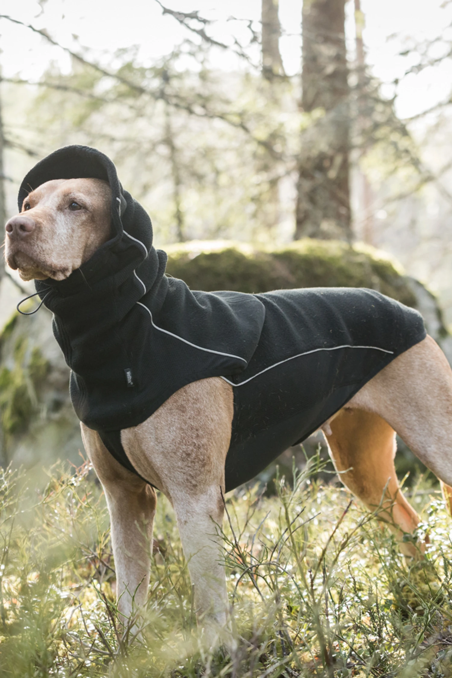 Halte den Hals und die Ohren deines Hundes mit einem praktischen und funktionalen Halswärmer warm. Der weiche Fleecestoff und die anatomische Passform um die Brust machen ihn sehr bequem. Ideal für Hunde, die leicht kalte Ohren bekommen oder Probleme mit Steifheit im Nacken haben. Der Halswärmer hat einen verstellbaren Kordelzug, damit er optimal um den Kopf deines Hundes passt. Reflektierende Details sorgen für zusätzliche Sichtbarkeit und Sicherheit. Das Welltex®-Futter reflektiert die Körperwärme des Hundes und kann dazu beitragen, die Ohren warm und den Hals flexibel zu halten. Das Material ist kuschelig und bequem mit hoher Atmungsaktivität, während die Netzeinsätze an den Seiten für zusätzliche Luftzirkulation sorgen. Er passt perfekt zu dem Back on Track Fleece-Pullover Eddie. Dein Hund kann den Halswärmer allein oder zusammen mit dickeren Mänteln tragen.