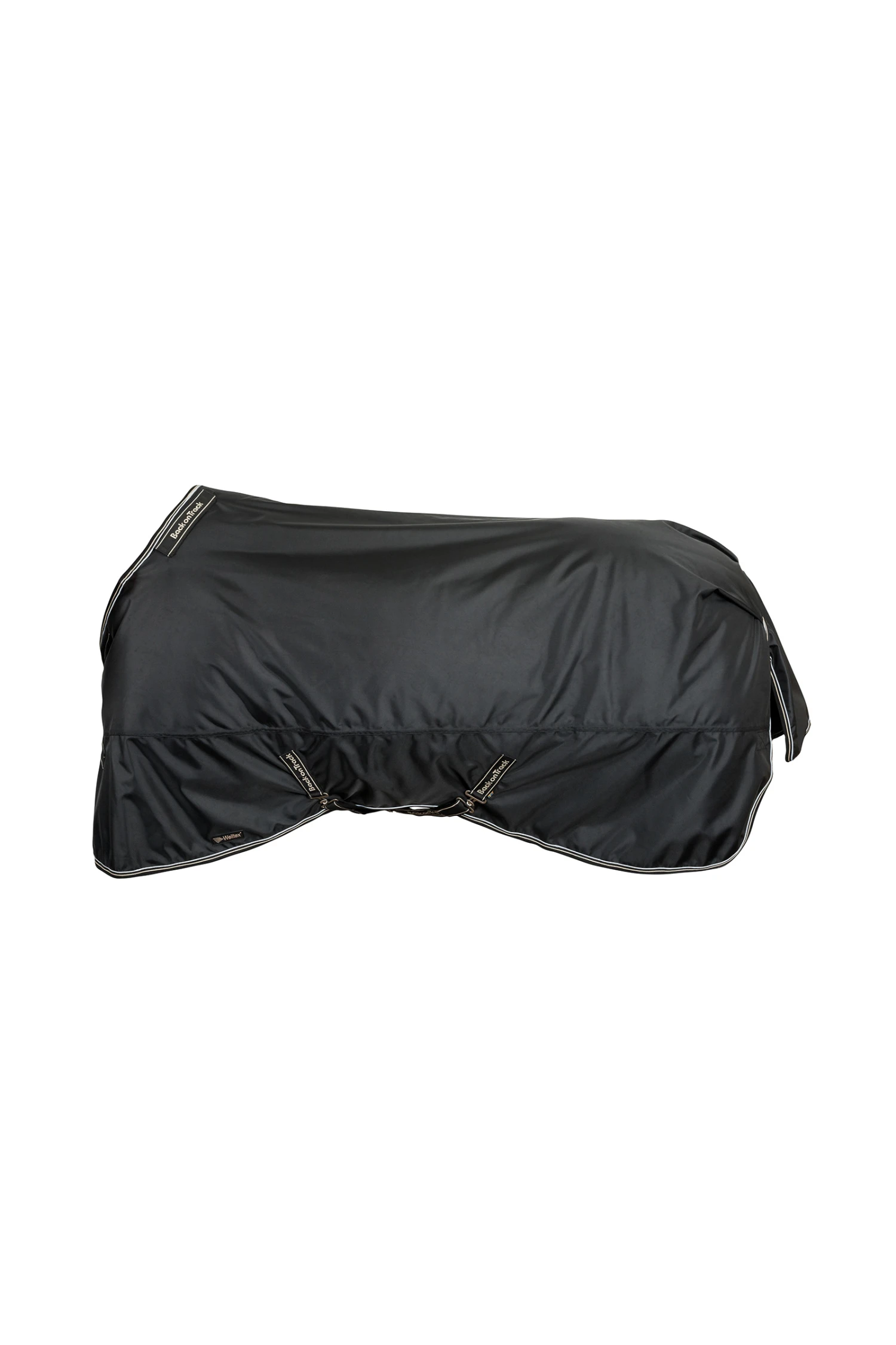 Obsidian ist eine äußerst elegante, multifunktionale Weidedecke mit passendem Halsteil. Die anatomische Passform und die weiche Schaumstoffpolsterung oben auf dem Widerrist heben die Decke leicht an, um den Druck zu mindern und den Komfort zu erhöhen. Die Decke gibt es in drei verschiedenen Ausführungen: die Basisversion ohne Füllung, eine etwas dickere Version mit 150 g Füllung (#345231) und eine warme Version mit 300 g Füllung (#345232), die den Anforderungen kalter Winterbedingungen gerecht wird. Sowohl Decke als auch Halsteil bestehen aus einer atmungsaktiven, wasserabweisenden Außenschicht (5000mm-3000gsm) und einer Innenschicht aus gewebtem Welltex®-Gewebe, die dem Fell des Pferdes am nächsten ist. Die glatte Oberfläche des Futters schützt das Fell vor Scheuerstellen, und der Stoff reflektiert die Infrarotenergie intensiv und stark. Durch die große Größe der Decke kann Welltex® seine therapeutische Wirkung auf eine große Fläche des Pferdekörpers ausüben. Obsidian hüllt das Pferd in eine weiche Umarmung, die dazu beitragen kann, die Durchblutung aller großen, wichtigen Muskelgruppen anzuregen – was sie zu einer hervorragenden Wahl vor und nach jeder Aktivität sowie während der Ruhe- und Erholungsphase macht. Die Decke wird durch doppelte Brustschnallen, gekreuzte Gurte und eine kunststoffummantelte Schweifkordel mit D-Ringen an ihrem Platz gehalten. Das Design ermöglicht eine einfache und stabile Befestigung an Back on Track-Linern.