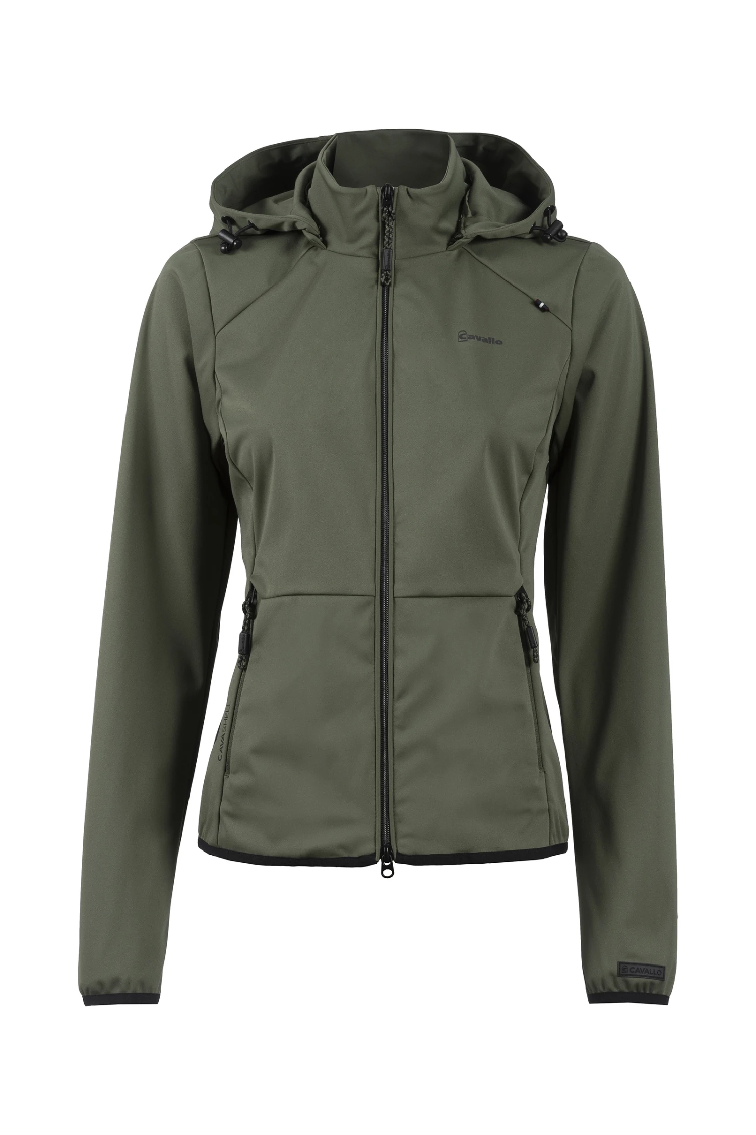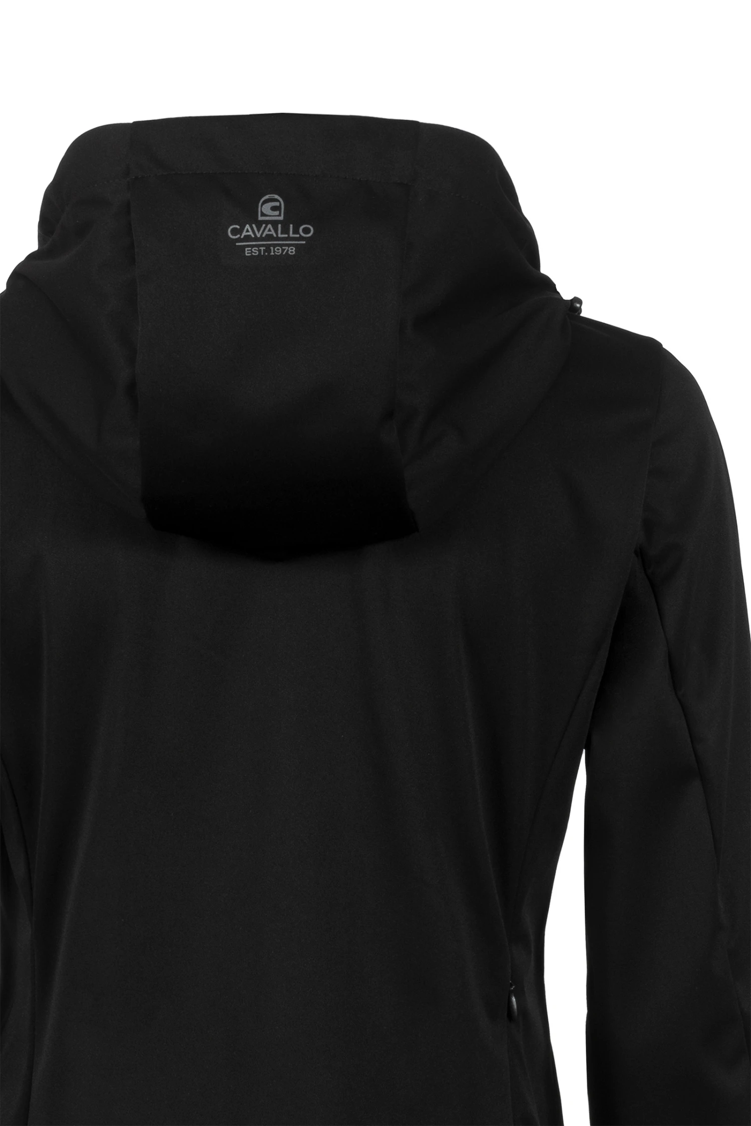 mit abnehmbarer Kapuze, die am Rücken befestigt werden kann. Zwei vordere Reißverschlusstaschen mit Anhänger. 2-Wege-Reißverschluss mit Anhänger in vorderer Mitte nahtverdeckter Reißverschluss im unteren, rechten Rückenteil. Ösen unter dem Arm garantieren eine gute Luftzirkulation. Alle Details sind schwarz gehalten. Jacke besteht zu 100% aus recyceltem Polyester.
