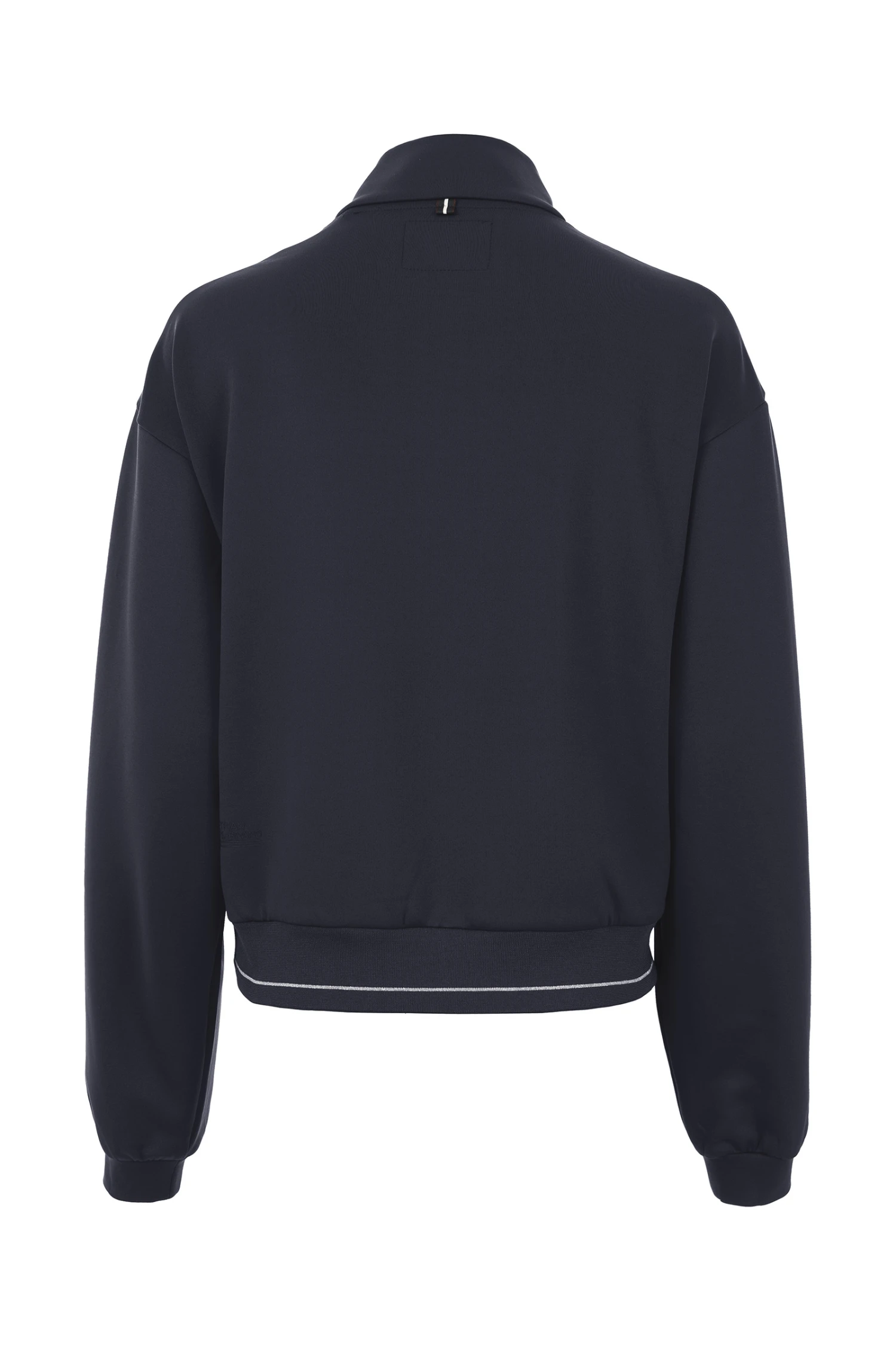 Mit Reißverschluss im Stehkragen. Reißverschluss mit Cavallo Schmuckanhänger mit Kristall. Rippbündchen mit Kontraststreifen am Saum. Erhabenes Cavallo Flaglabel in linker Seitennaht. Tonales, leicht erhabenes Cavallo Artwork unterhalb der Passe im VT sowie auf der linken Brust. Weiteres, tonales und leicht erhabenes Cavallo Artwork oberhalb des Saums auf dem RT.