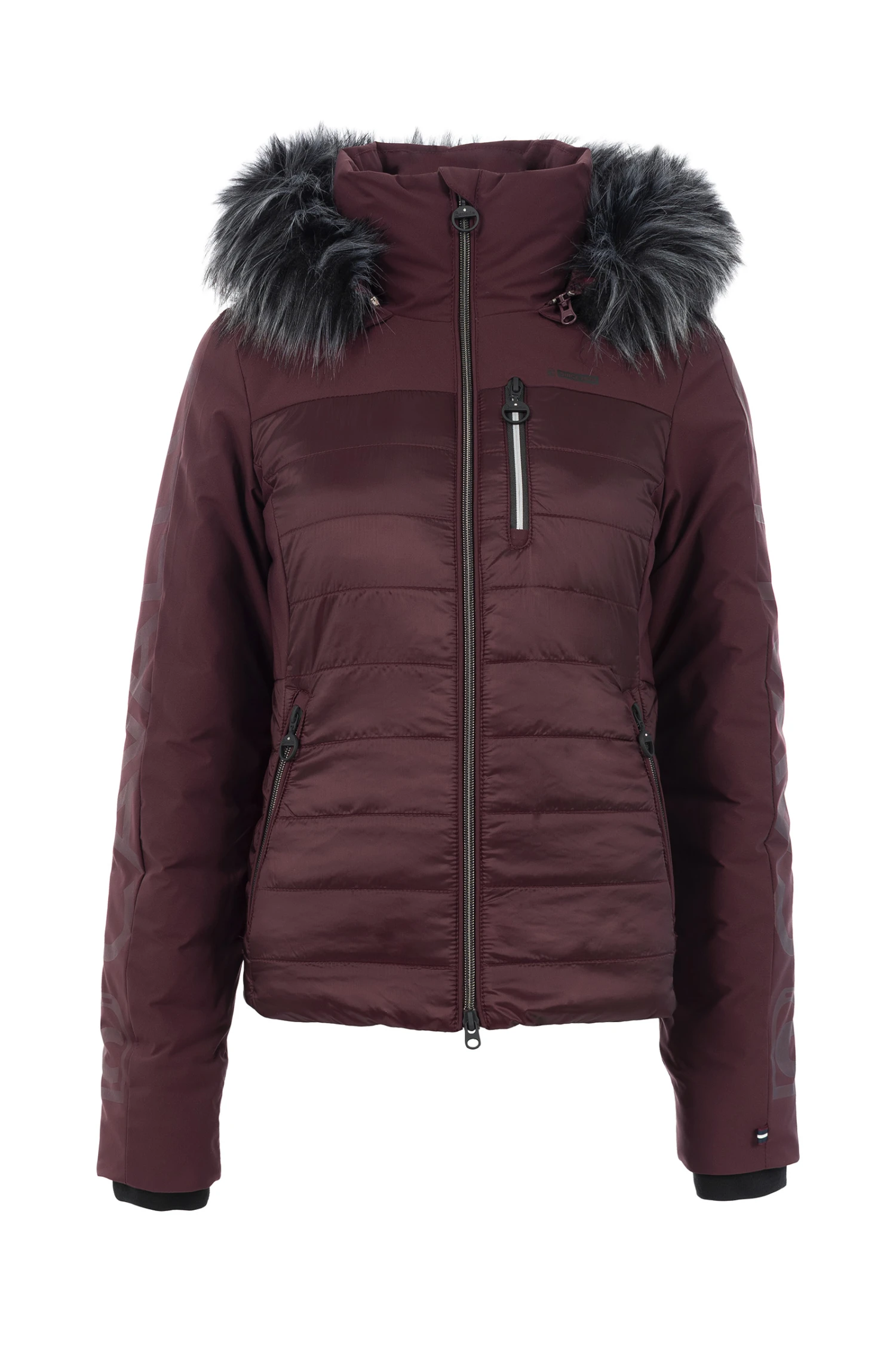 Mit abnehmbarer Kapuze mit Kunstfellkranz. Steppdessin außen sichtbar an Vorder-und Rückenteil sowie dem unterem Seitenteil. Steppung innen überall sichtbar mit großem Cavallo Print im Rücken. Schulter, Ärmel und oberes Seitenteil außen glatt. Zwei Reißverschlusstaschen mit Cavallo Schmuckanhänger mit Kristall. Brusttasche links mit reflektierendem Reißverschluss. 2-Wege-Reißverschluss in der vorderen Mitte. Frontreißverschluss und Brusttaschen Reißverschluss ebenfalls mit Cavallo Schmuckanhänger mit Kristall. Innentasche mit Reißverschluss. Großes, tonales Cavallo Artwork entlang der Ärmel. Ärmelabschluss mit innen liegendem Strickbund in Schwarz.