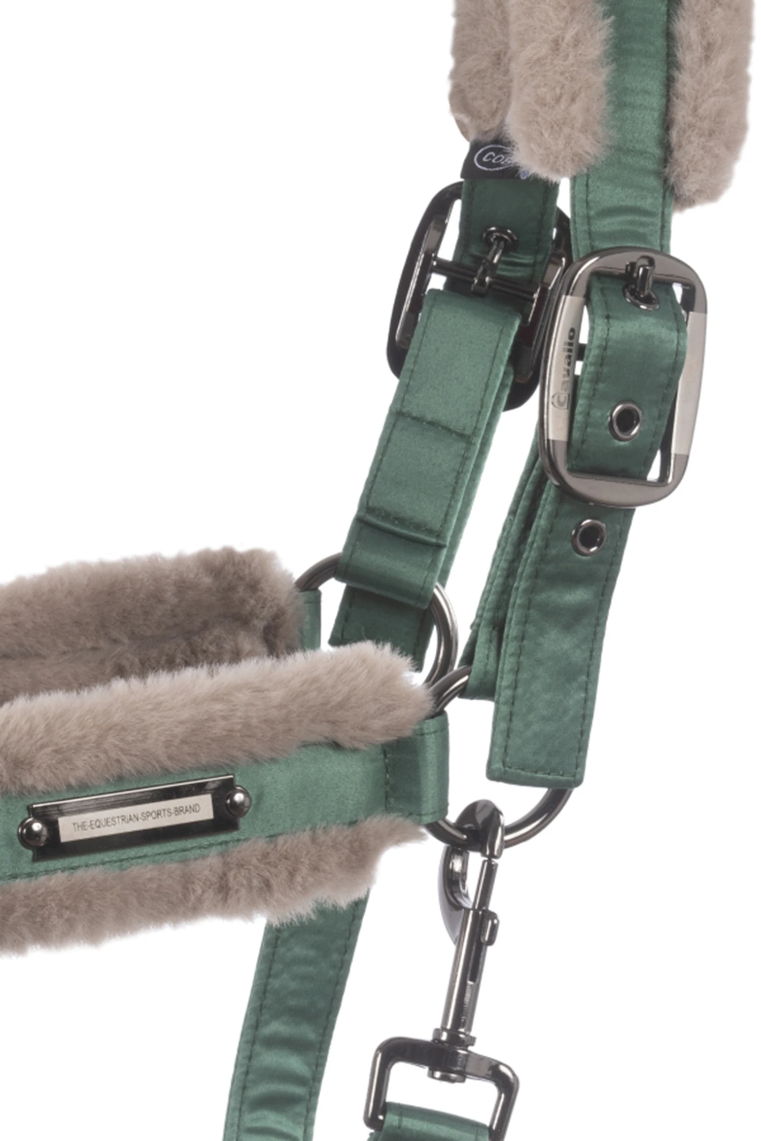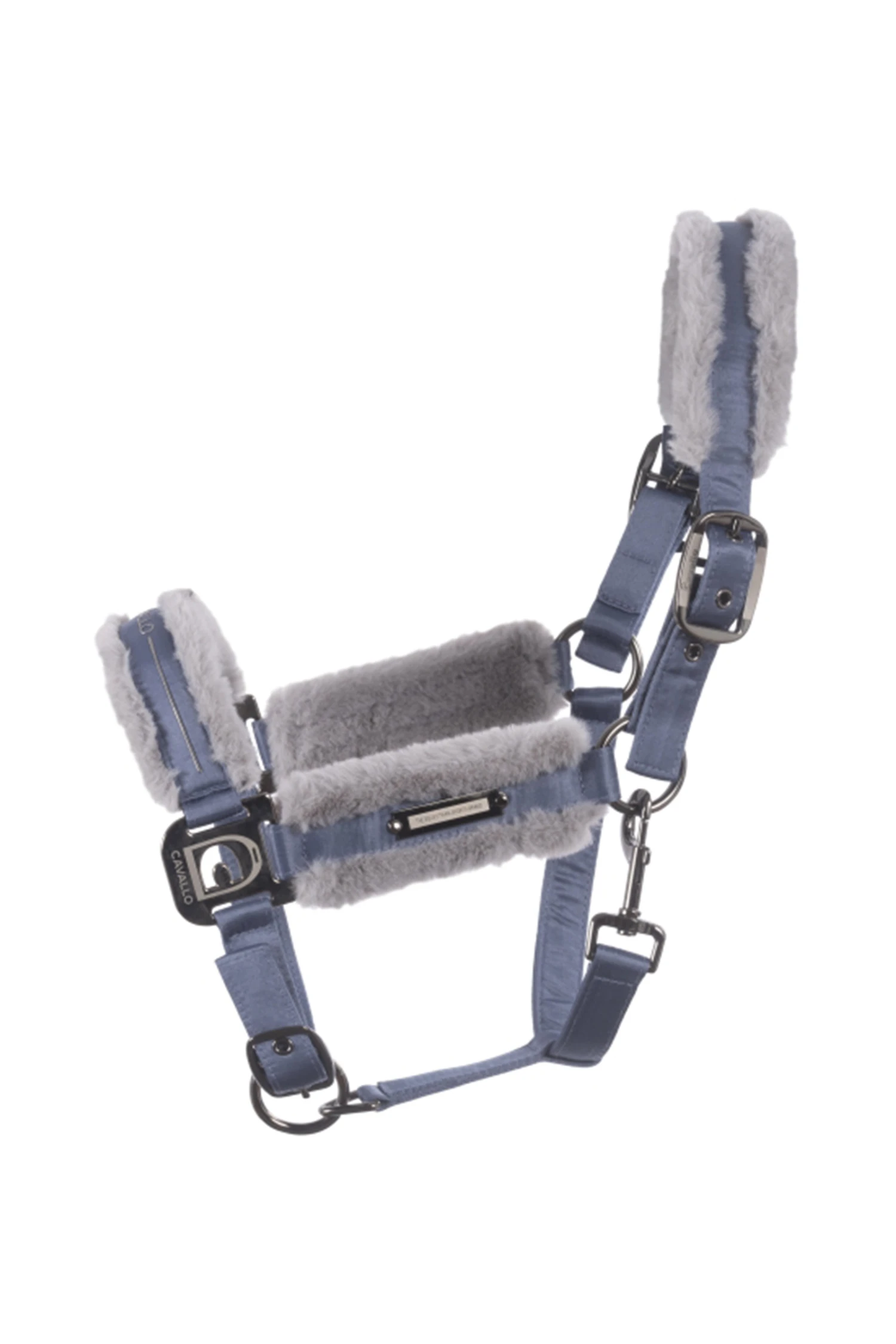 Das Halfter besteht aus edel schimmerndem Satin. Ausgestattet mit einer komfortablen Polsterung an Nase und Genick.Halfterschnallen mit ausgefrästem Cavallo Logo in Gunmetal mit Silber gehalten.Im Genick und an der Nase größenverstellbar durch Dornschnallen.Das Nasenband ist mit ein dezenten Cavallo Print in Gunmetal versehen.