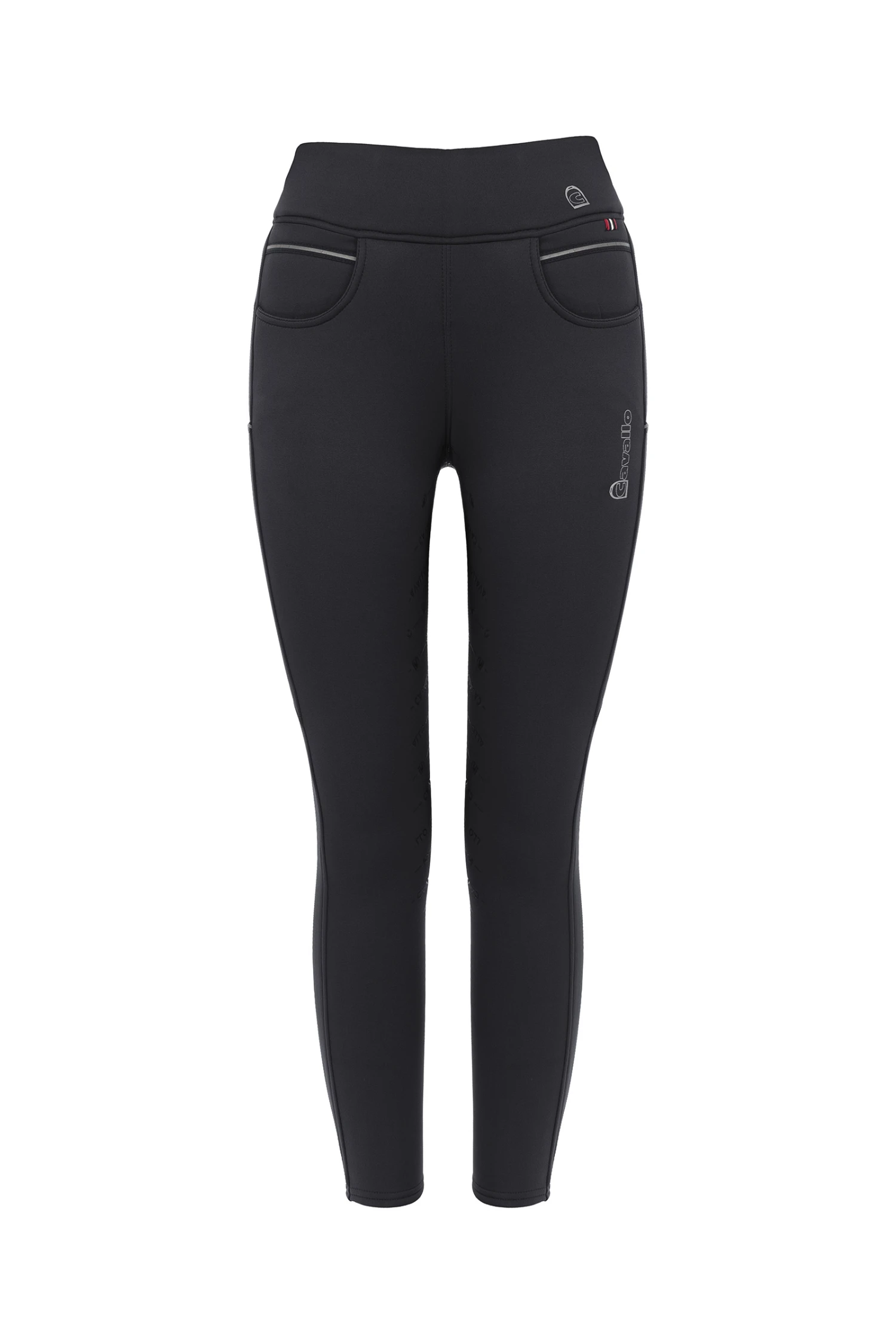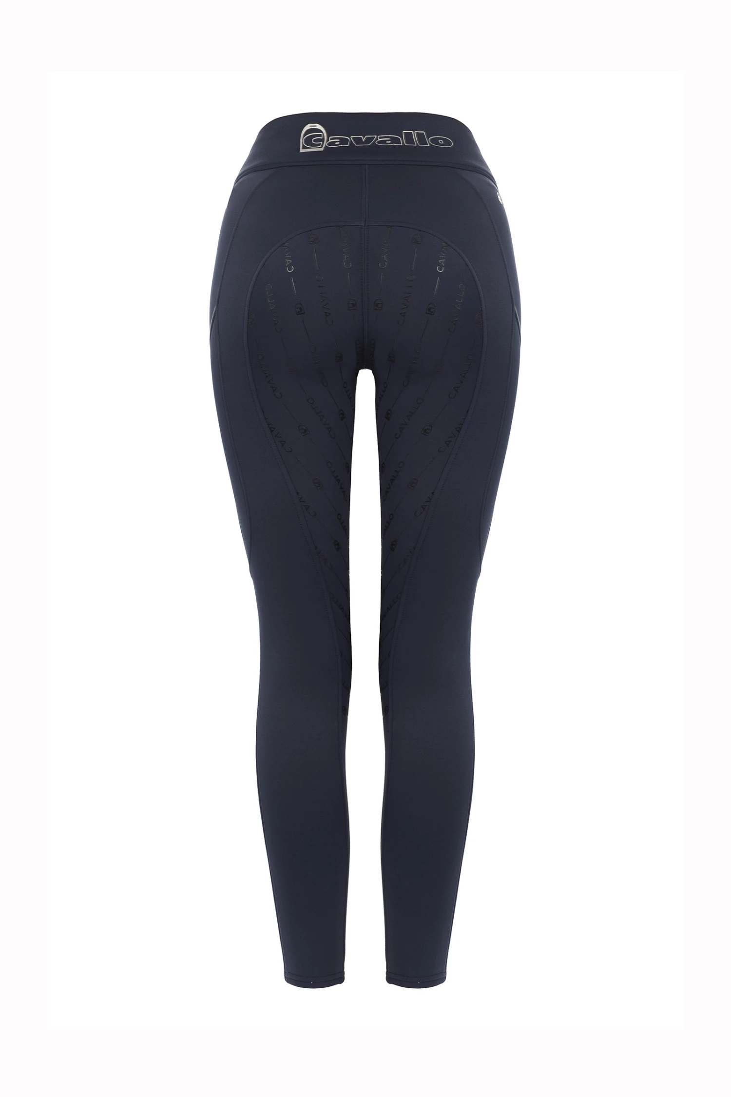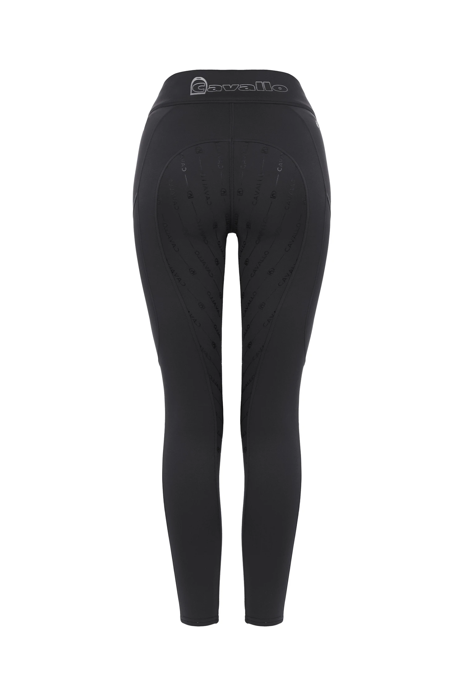 Sportlich, warme Reitleggings. Wintermodell der LIZ GRIP Reitleggings. Sehr komfortables, innen weich angerautes Material. Breiter Bund mit Cavallo Print hinten und Cavallo Steigbügel Logo vorne. Modischer Five-Pocket Look durch Eingrifftaschen vorne. Handytaschen auf beiden Seiten auf dem Oberschenkel. Canvasband mit reflektierendem Streifen oberhalb der Eingrifftaschen und auf den Handytaschen. Silikonbesatz mit Cavallo Schriftzug.