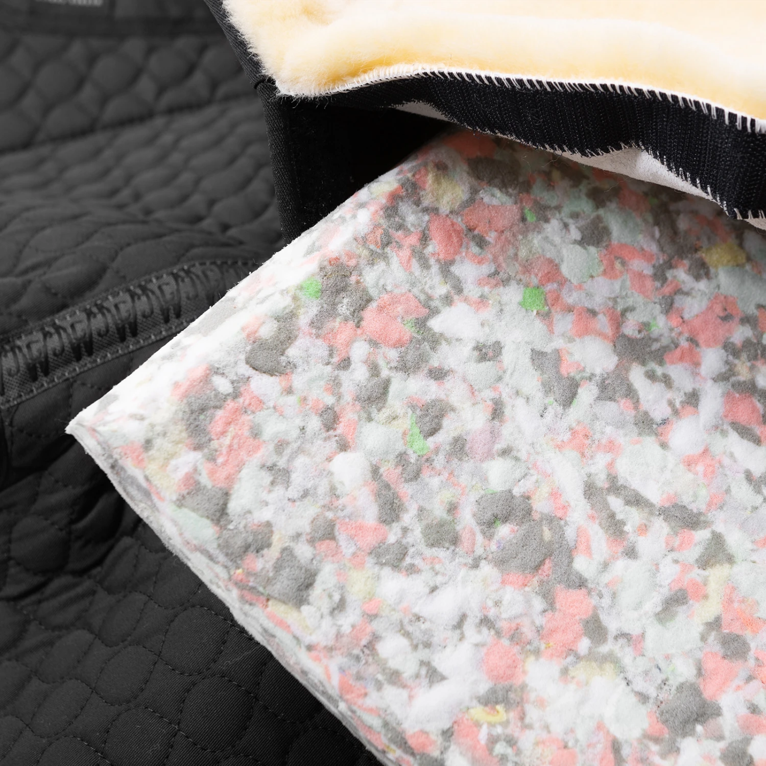 In der Form an Western Sättel mit Roundskirt angepasst. Auf der Unterseite komplett mit Lammfell bezogen. In die eingearbeiteten Einschubtaschen/Kammern, können Polster eingelegt werden. Der Widerrist ist ausgeschnitten. Ein starker Scheuerschutz aus Nylon verhindert dauerhafte Beschädigungen durch den Sattelgurt. Lieferung ohne Polster. Diese können optional bestellt werden.
