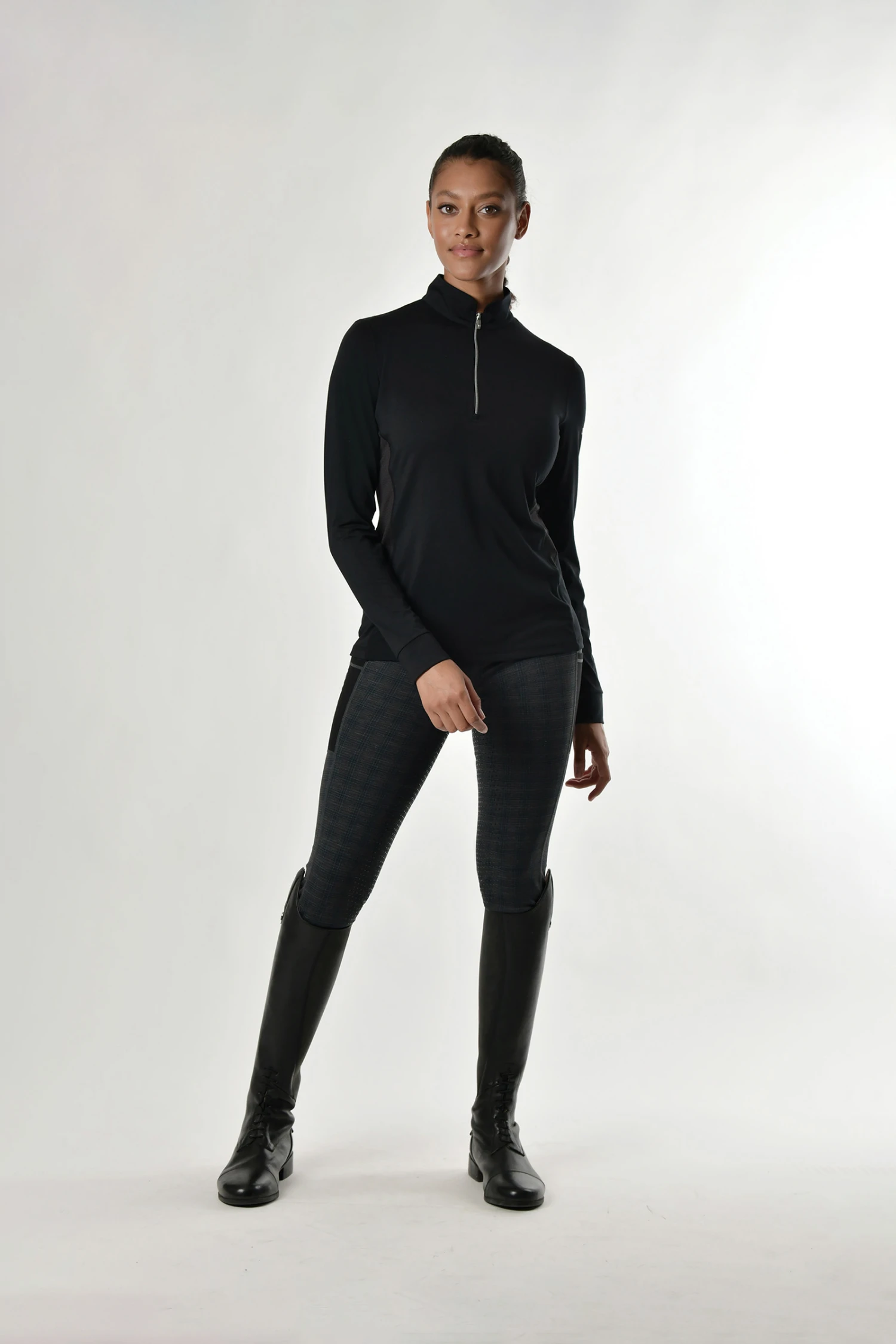 Das Dublin Kylee Long Sleeve Shirt II ist ein großartiges, atmungsaktives und vielseitiges Langarmshirt aus Bi-Stretch-Jersey mit Lichtschutzfaktor 50+ und einem gepeachten Außenmaterial. Die Comfort Dry Technologie sorgt bei jedem Wetter für eine optimale Feuchtigkeitsregulierung und ganztägigen Tragekomfort. Mesh-Einsätze an den Seiten und Mesh unter den Ärmeln sorgen für Belüftung und eine Rückenpasse mit Falten ermöglicht zusätzliche Bewegungsfreiheit. Das gepeachte Außenmaterial des Dublin Kylee Shirts lässt Schmutz, Heu und Pferdehaare abperlen, damit du immer gut aussiehst. Ein Stehkragen mit halber Reißverschlussleiste sorgt für eine bequeme Passform. Der silberne, reflektierende Dublin-Schriftzug erhöht die Sichtbarkeit.