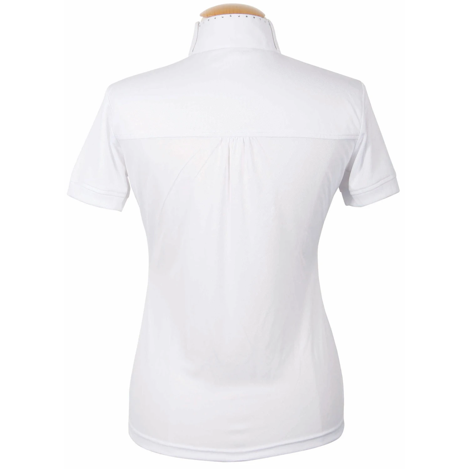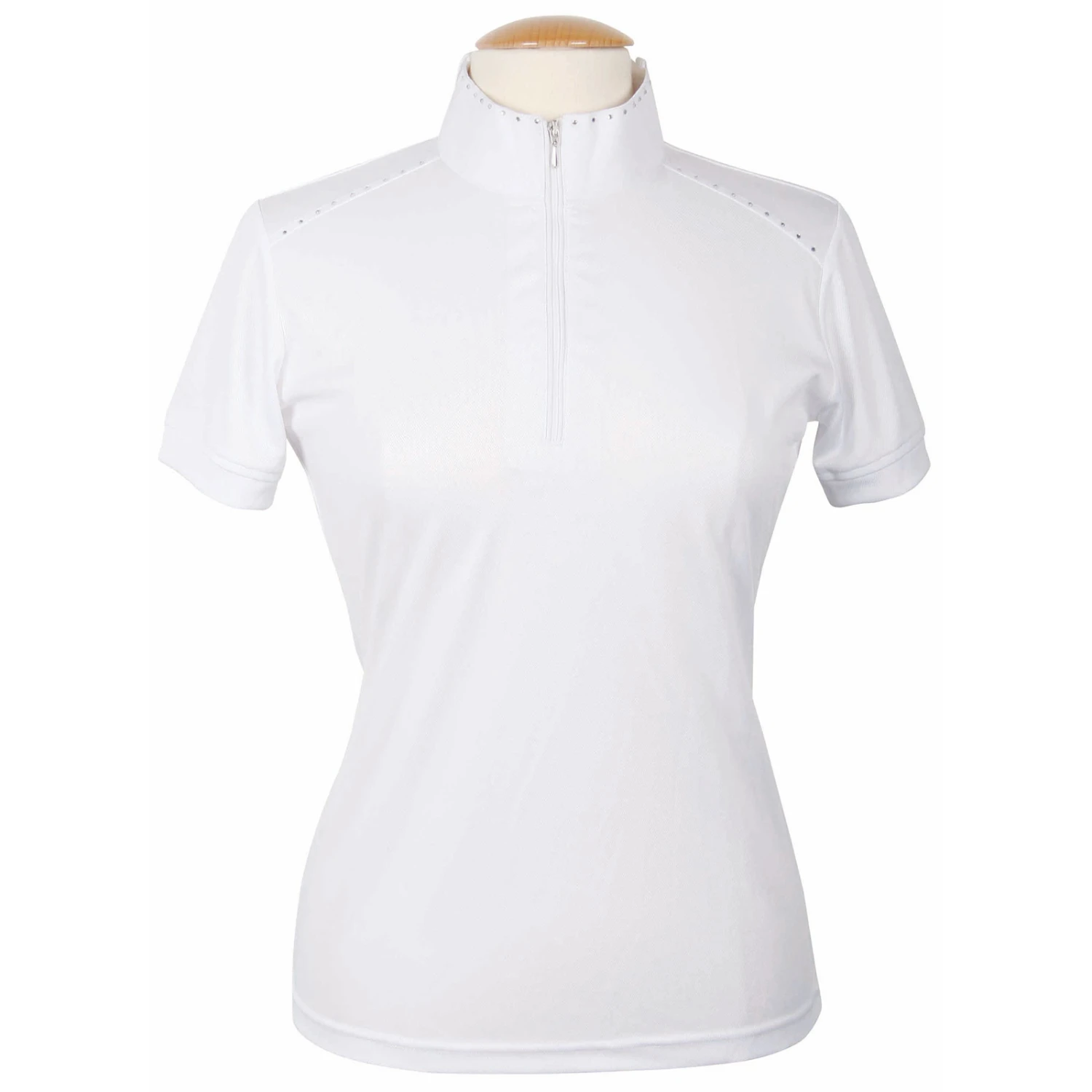 Luxuriöses Turniershirt mit Applikationi aus Strass-Kristallen, Reißverschluss und einem Stehkragen mit Schlaufen für die Krawatte.