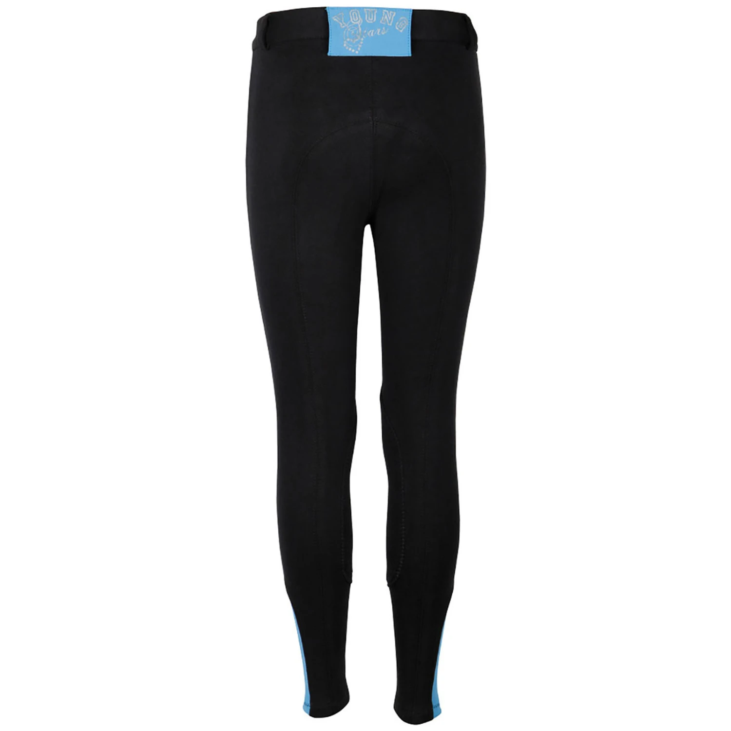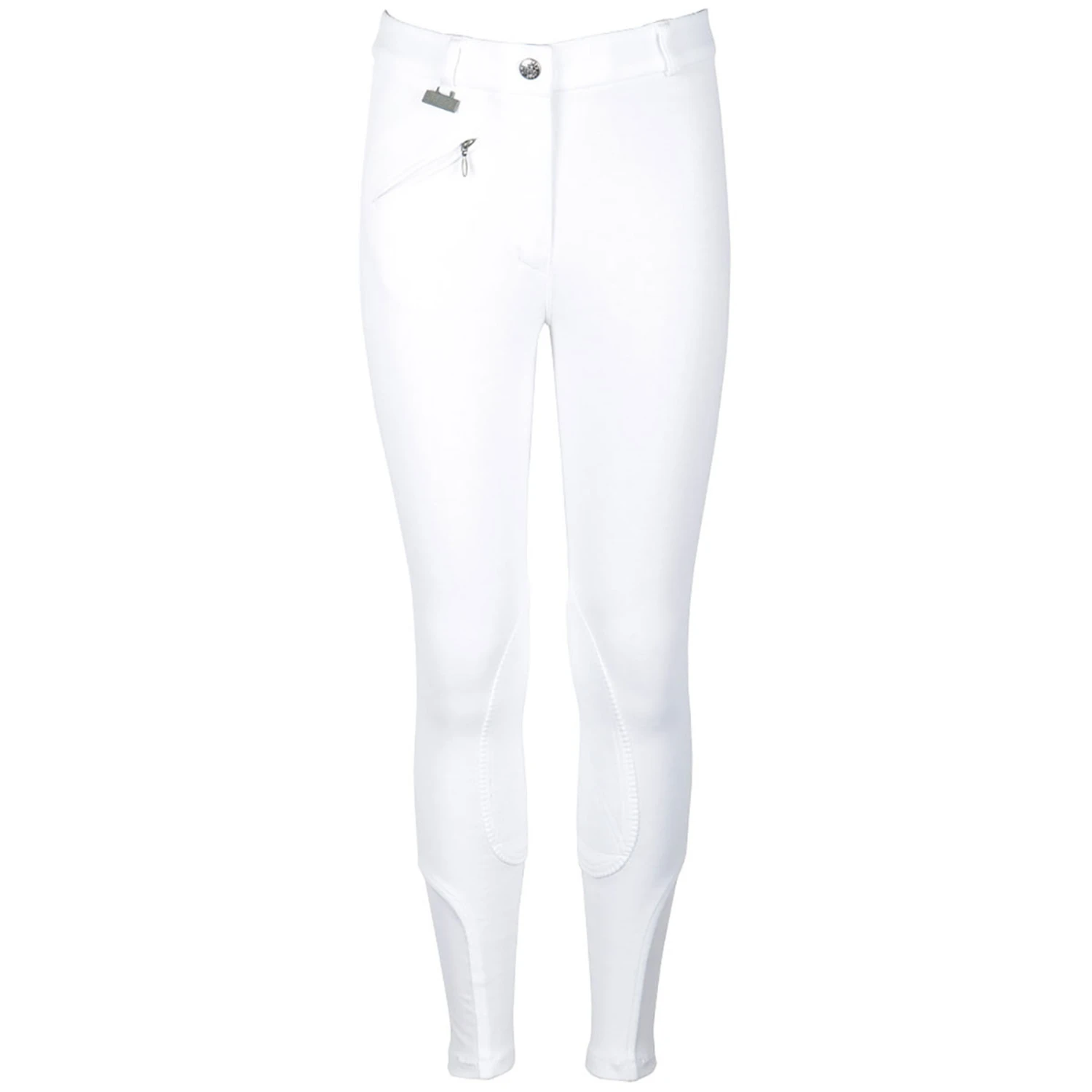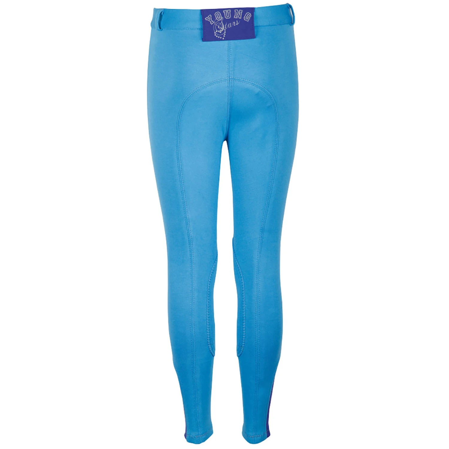 Schmal geschnittene Reithose für Kinder. Mit Reißverschlusstasche, Schiebeverschluss, Reißverschluss, Gürtelschlaufen und elastischem Beinabschluss mit Lycra.