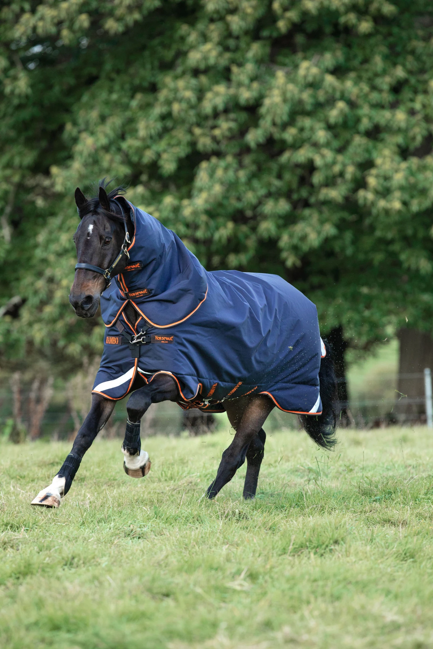 Beinausschnitte, Reflektorstreifen, abwaschbarer Schweifriemen, Liner-Ösen, 3 sichere Kreuzgurte und glanzgebendes Innenfutter aus Polyester.