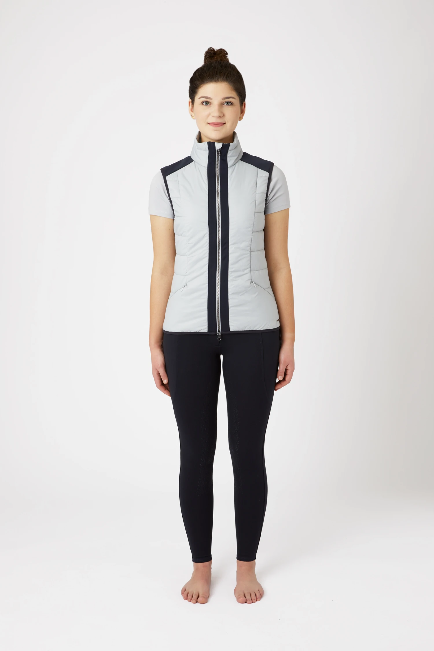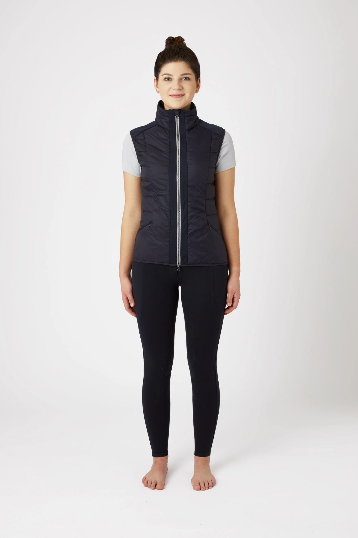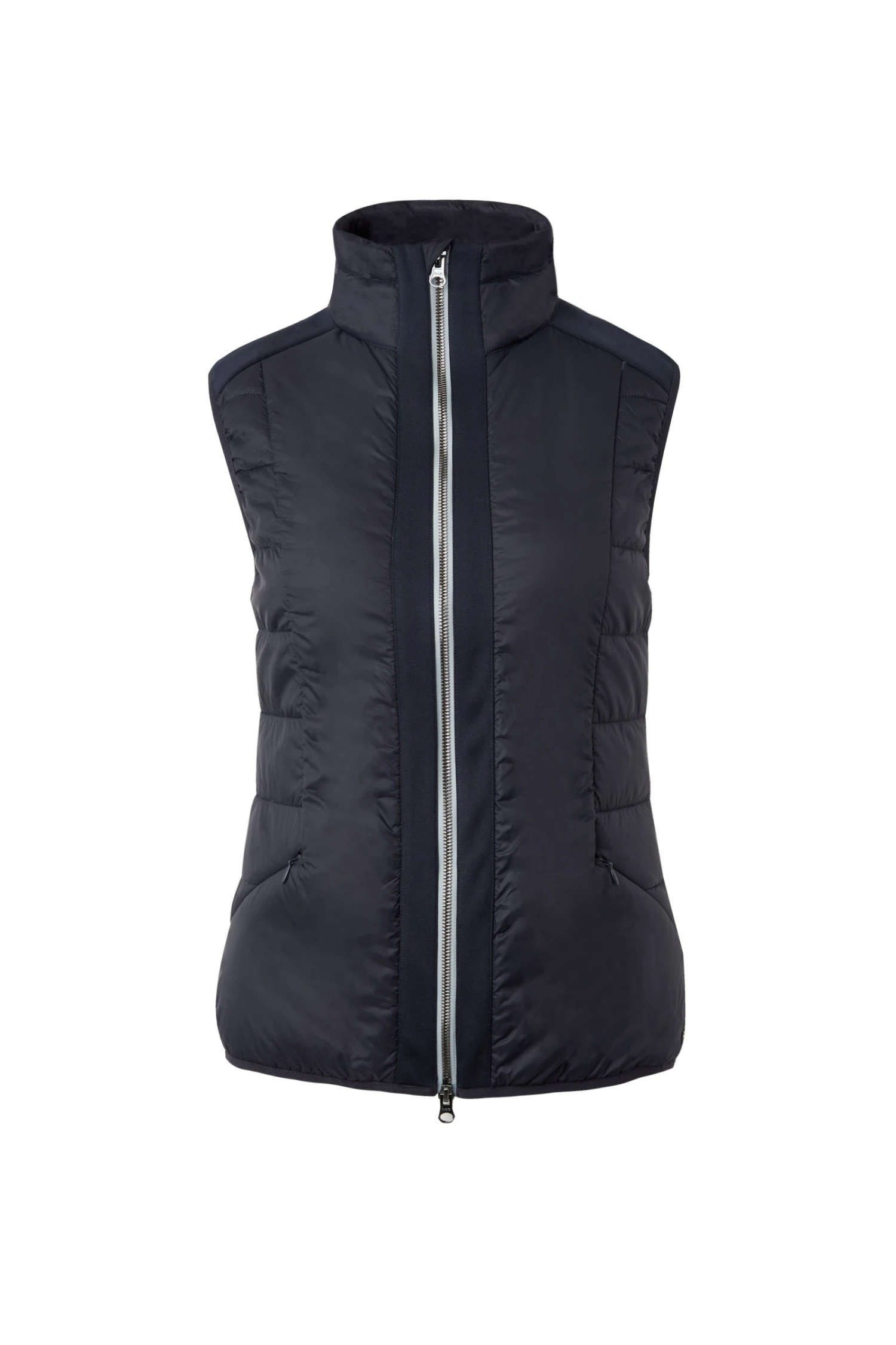 Diese funktionelle Damenweste ist leicht wattiert, an den Seiten gesteppt und hat ein einseitiges Stretch-Fleece-Panel in der hinteren Mitte und auch hinten an den Ärmeln, um optimale Bewegungsfreiheit beim Reiten zu gewährleisten. Kontrastierende Paspeln an Saum, Armausschnitten und Reißverschluss. Sie ist wasserabweisend und winddicht und eignet sich perfekt zum Unterziehen. 3D-Logoaufdruck auf der Rückseite unterhalb des Nackens und eine kleine Logoplatte aus Metall am vorderen Saum. Zwei verdeckte Reißverschlusstaschen bewahren deine Sachen während des Reitens sicher auf.