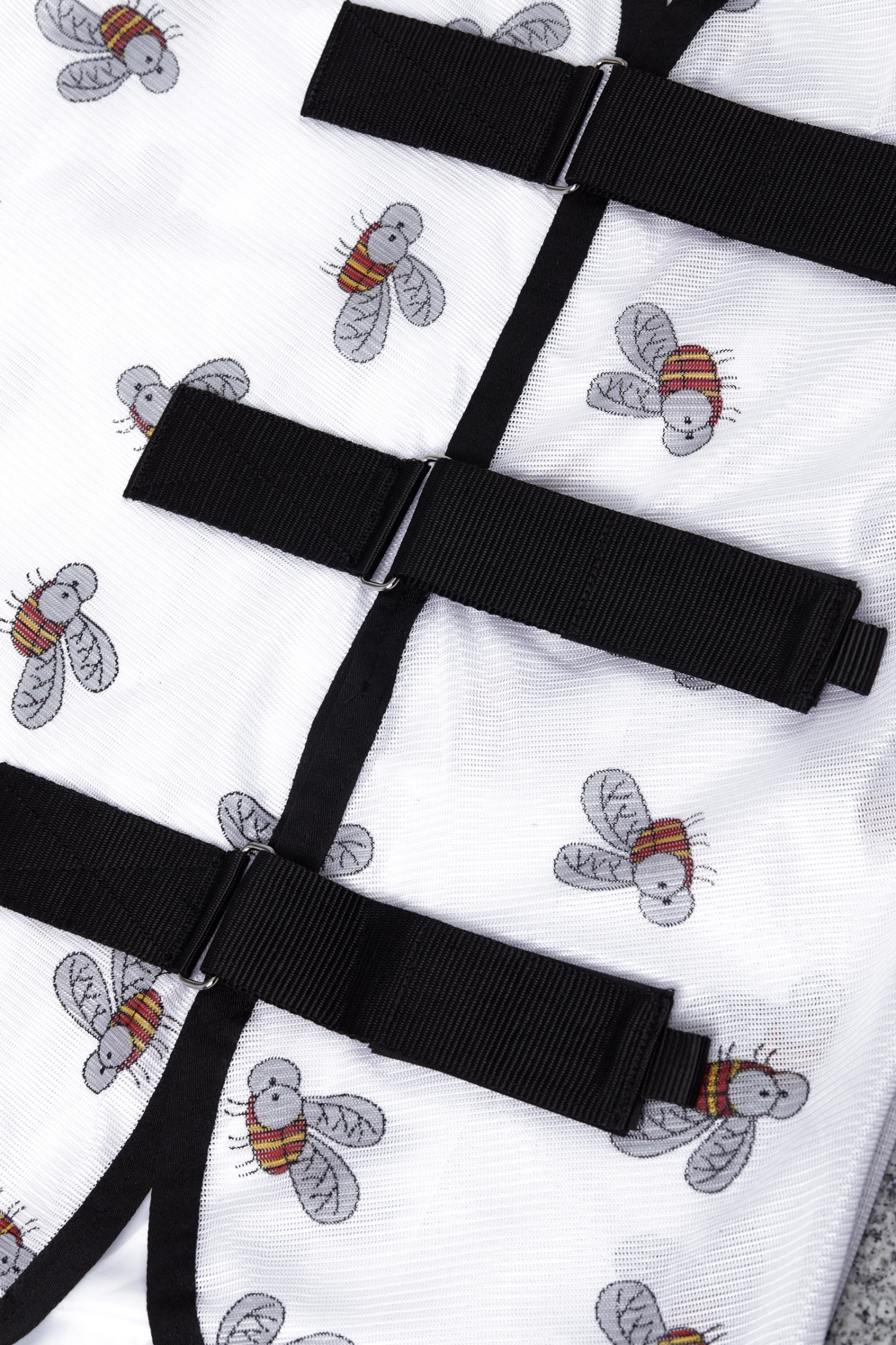 Die Horze Defender Fliegendecke schützt dein Pferd in Sommer von Hals bis Schweif vor Insekten. Elastik zwischen Decke und Halsteil sorgt für Komfort. Das Halsteil kann mit einem Klettverschluss fixiert werden und bietet die Option für eine Fliegenmaske. Hohe Gehfalten schränken die Bewegungsfreiheit deines Pferdes nicht ein. Frontverschlüsse, Kreuzgurte und Schreifriemen halten die Decke an ihrem Platz.