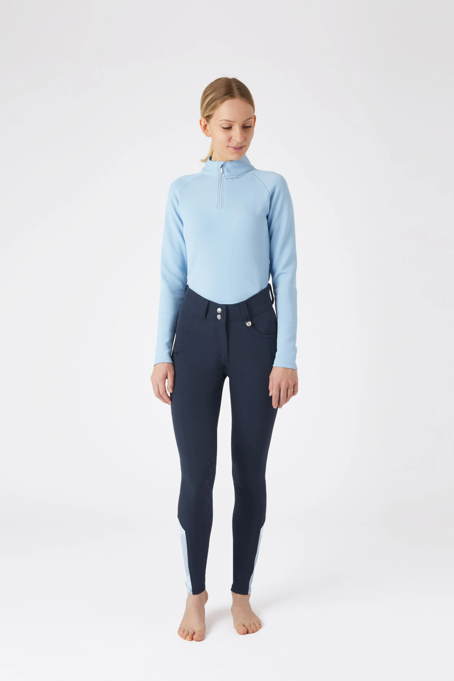 Diese Reithose wurde entwickelt, um jungen Reitern sowohl Komfort als auch Leistung zu bieten. Sie ist aus Kompressionsmaterial gefertigt und bietet eine stützende und schmeichelhafte Passform. Das Logotape auf den Gesäßtaschen sorgt für einen Hauch von Branding. Der # Silikonprint auf dem Gesäß sorgt für hervorragenden Halt und Stabilität im Sattel. Die kontrastfarbenen Beinabschlüsse setzen ein trendiges Detail. Mit einer praktischen Handytasche und einer Vordertasche haben junge Reiter ihre wichtigsten Utensilien immer griffbereit. Diese Reithose ist in den Größen für junge Reiter erhältlich und tailliert, damit sie perfekt sitzt.