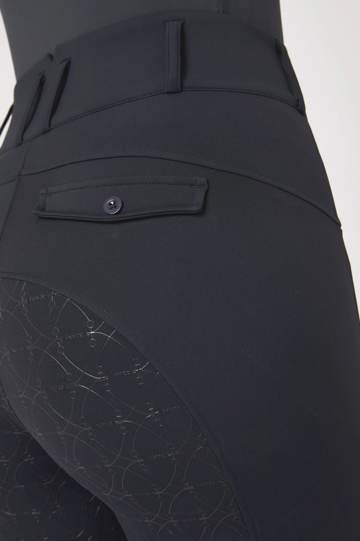 Unsere Horze Ingrid Winterreithose ist hoch tailliert und elastisch. Das Futter ist superweich und warm. Wasserabweisenden Eigenschaften sorgen für Komfort. Zwei tiefe Fronttaschen bieten Platz für dein Handy. Der Silikonvollbesatz hält dich sicher im Sattel. Auch als Kniebesatz-Version erhältlich.