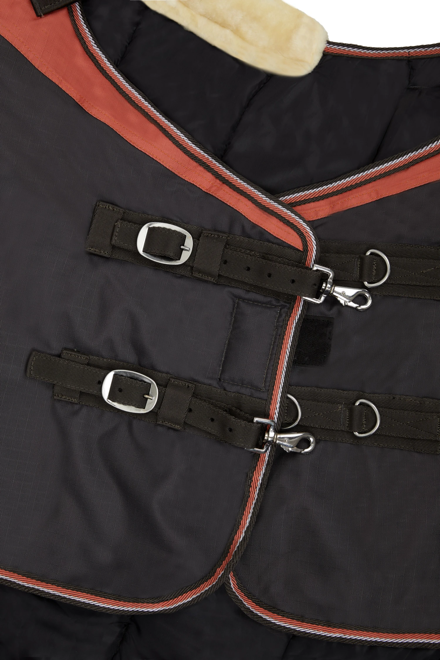 Unsere Horze Lucerne Regendecke hält dein Pferd trocken und die Füllung ist warm und bequem. Elastik hält die Decke an ihrem Platz und sorgt für die perfekte Passform. Doppelte Frontschnallen und Kreuzgurte schließen sicher. Ein Halsteil kann am Klettverschluss angebracht werden. Das sportliche Design lässt sich leicht in deine Reitausrüstung integrieren.
