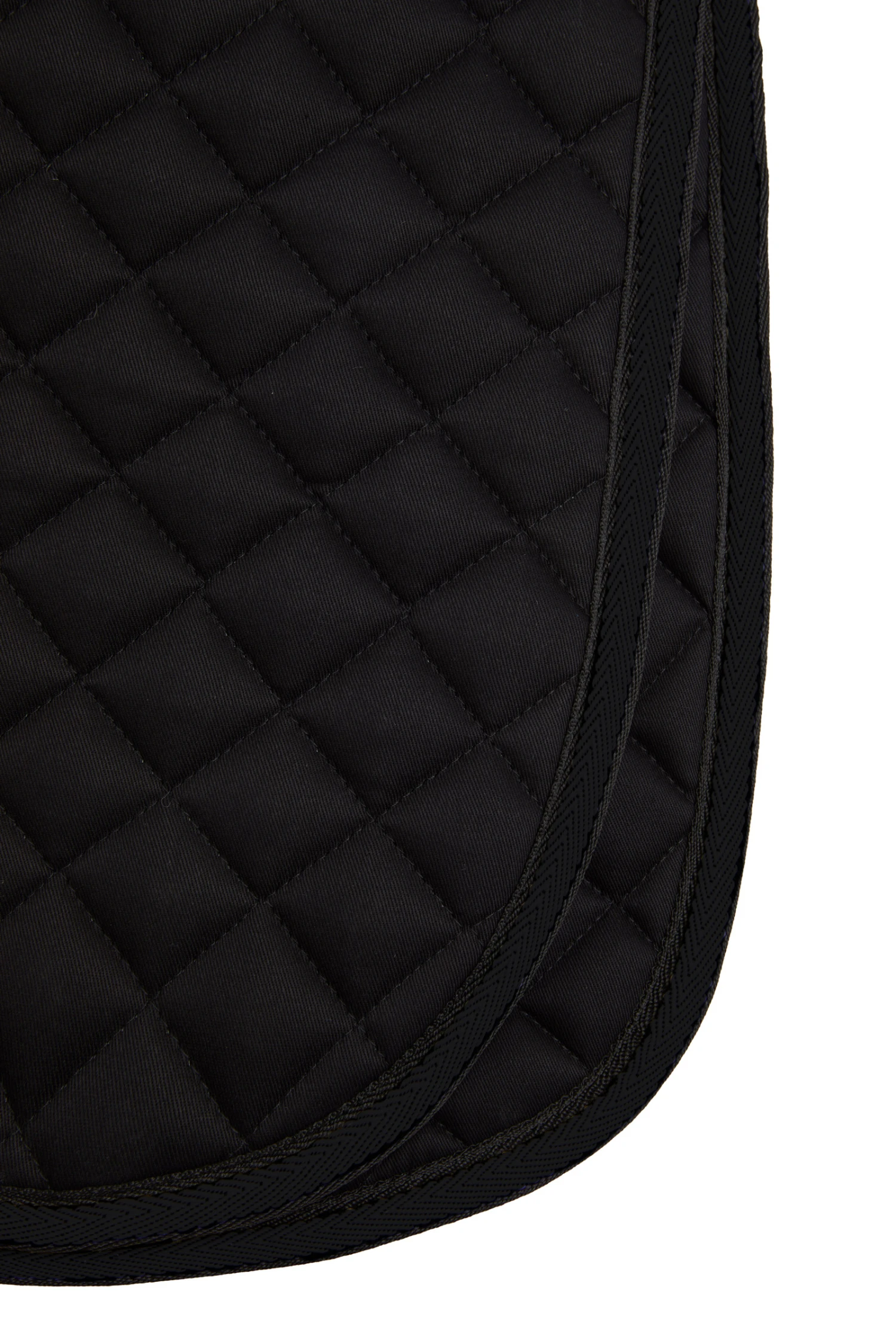 Diese leichtgewichtige Dressurschabracke ist funktionell und schön in sportlichen Farben und einem einfachen, klaren Design. Die kontrastfarbene Einfassung sorgt für den letzten Schliff bei dieser diamant-förmig gesteppten Schabracke. Klettverschlusse am Gurt und den Gurtstrippen halten das Pad bei jeglicher athletischen Aktivität in Position. Die Füllung ist gerade so dick, dass Sie zwar schonend ist, aber dennoch einen engen Kontakt zum Pferd herstellt.