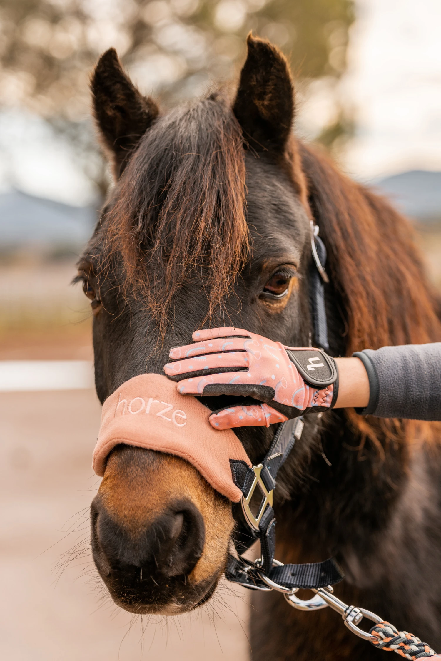 Bunte Kinderhandschuhe mit Regenbogen-Print auf der Oberhand. Das dehnbare Obermaterial sorgt für ein angenehmes Tragegefühl, während die Handfläche aus Kunstleder die Zügel fest im Griff hat. Zusätzliche Verstärkungen im Bereich der Zügel sorgen für zusätzlichen Schutz.
