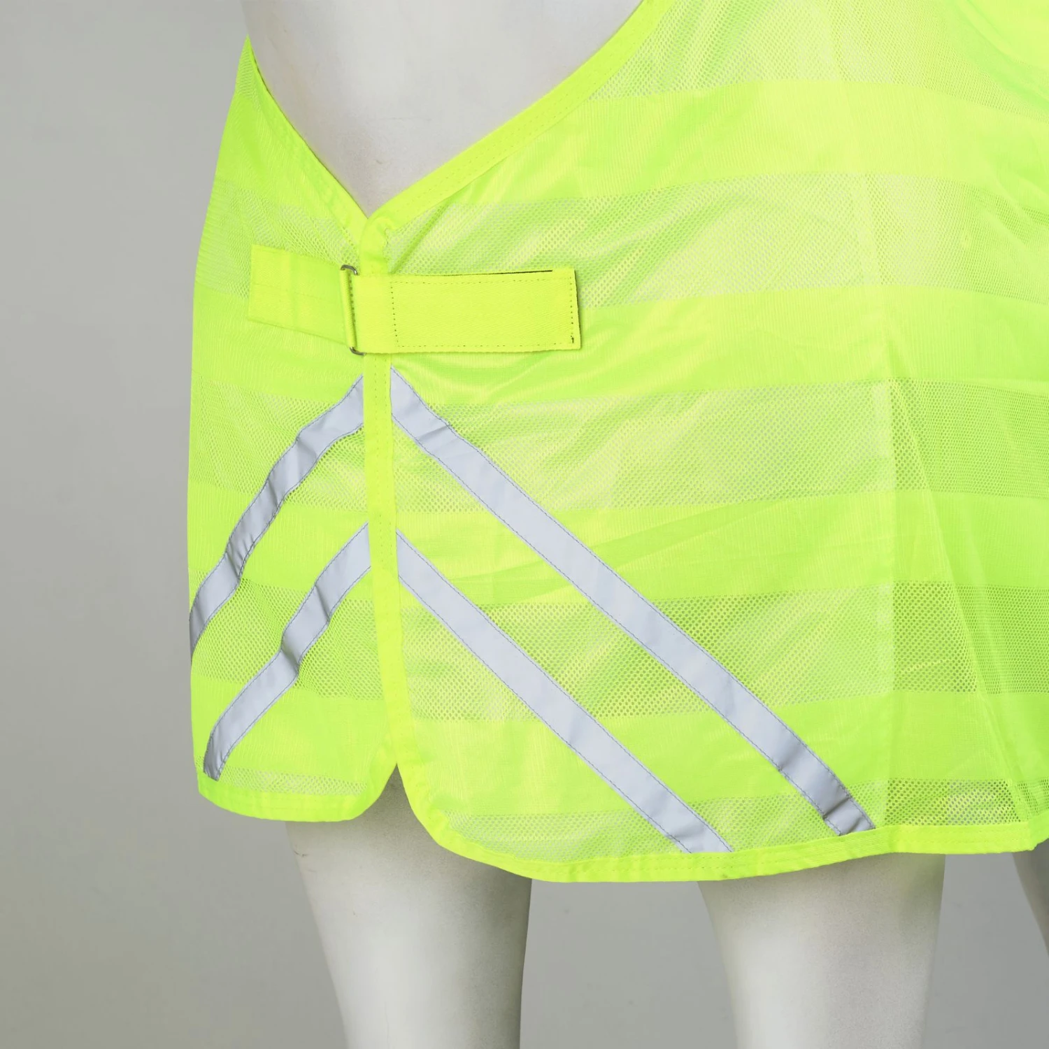 Diese Decke ist aus Netzmaterial hergestellt und vorne und hinten mit reflektierendem Band versehen, um sicherzustellen, dass dein Pferd im Dunkeln und im Straßenverkehr gesehen wird. Ein Klettverschluss mit T-Schnalle hält sie an ihrem Platz und verhindert Verrutschen. So bleibt dein Pferd sicher und sichtbar.