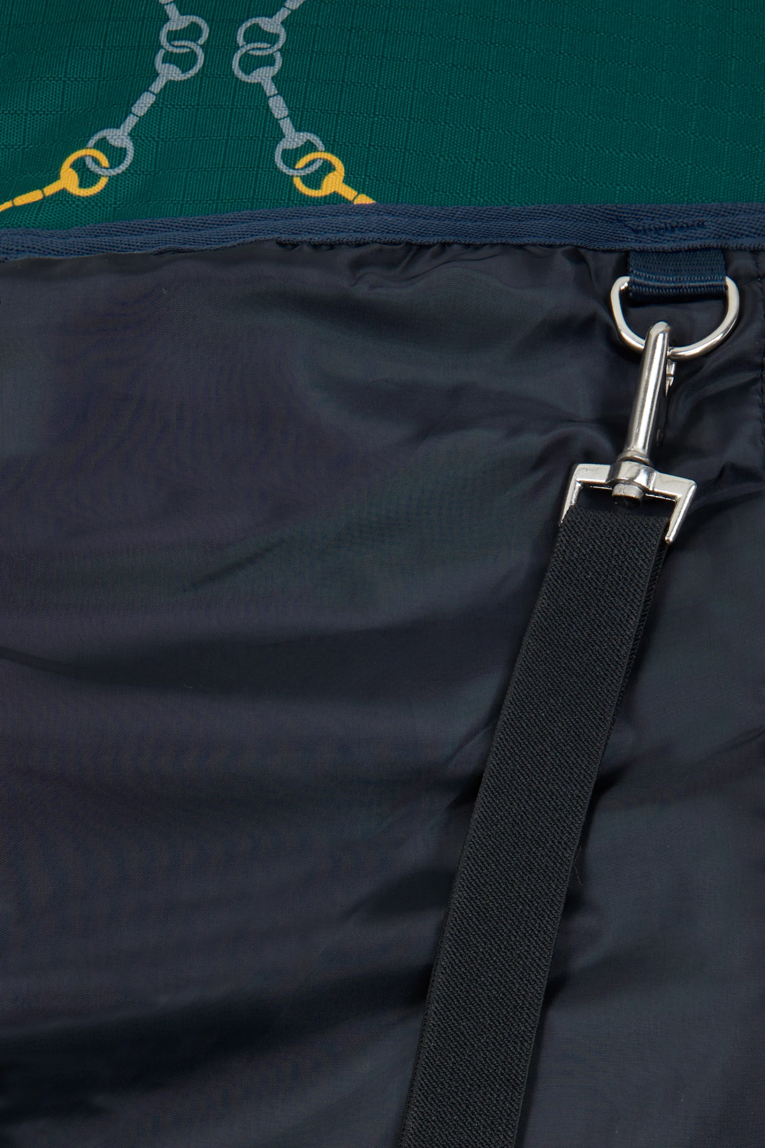Decke dein Pferd mit dieser schönen Decke ein, um es vor Kälte und Regen zu schützen. Sie ist aus strapazierfähigem Stoff mit Gebissprint gefertigt und mit zwei Vorderschnallen, Beinriemen, Kreuzgurten und einem Schweiflatz ausgestattet. Hohe Gehfalten schränken die Bewegungsfreiheit deines Pferdes nicht ein. Auch mit festem Halsteil erhältlich.