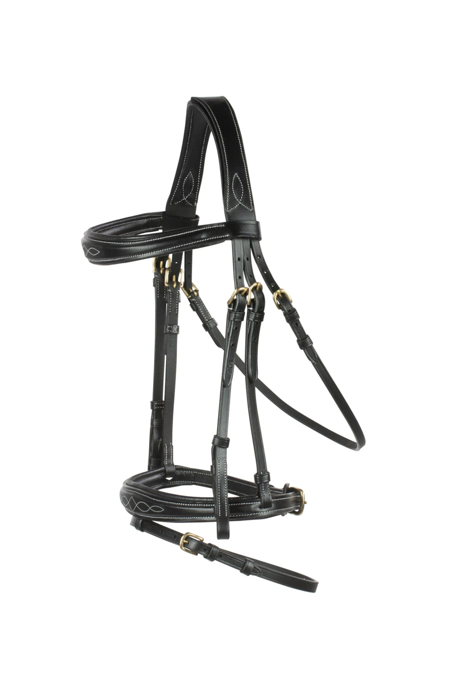 Diese elegante Trense ist am Nasen- und Stirnriemen dekorativ bestickt. Die weiche Polsterung lässt sie bequem am Pferdekopf anliegen. Gummizügel geben dir festen Halt. Messingbeschläge runden die Trense perfekt ab.