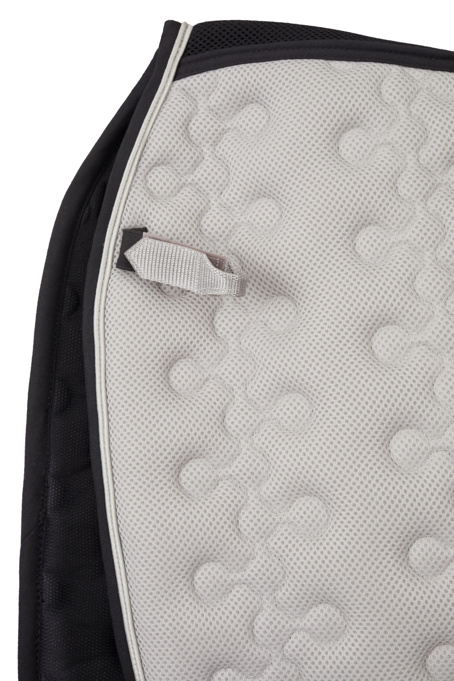 Die Schabracke Smoky Twilight besteht aus einem dicken 3D-Mesh-Gewebe, das für eine bessere Luftzirkulation und Temperaturregulierung sorgt. Das gesteppte Obermaterial sorgt für einen eleganten Look, während das feuchtigkeitsableitende Futter Funktionalität bietet. Abgerundet wird das Design durch eine feine kontrastierende Kordel und ein Branding entlang der Wirbelsäule sowie ein Logoabzeichen.