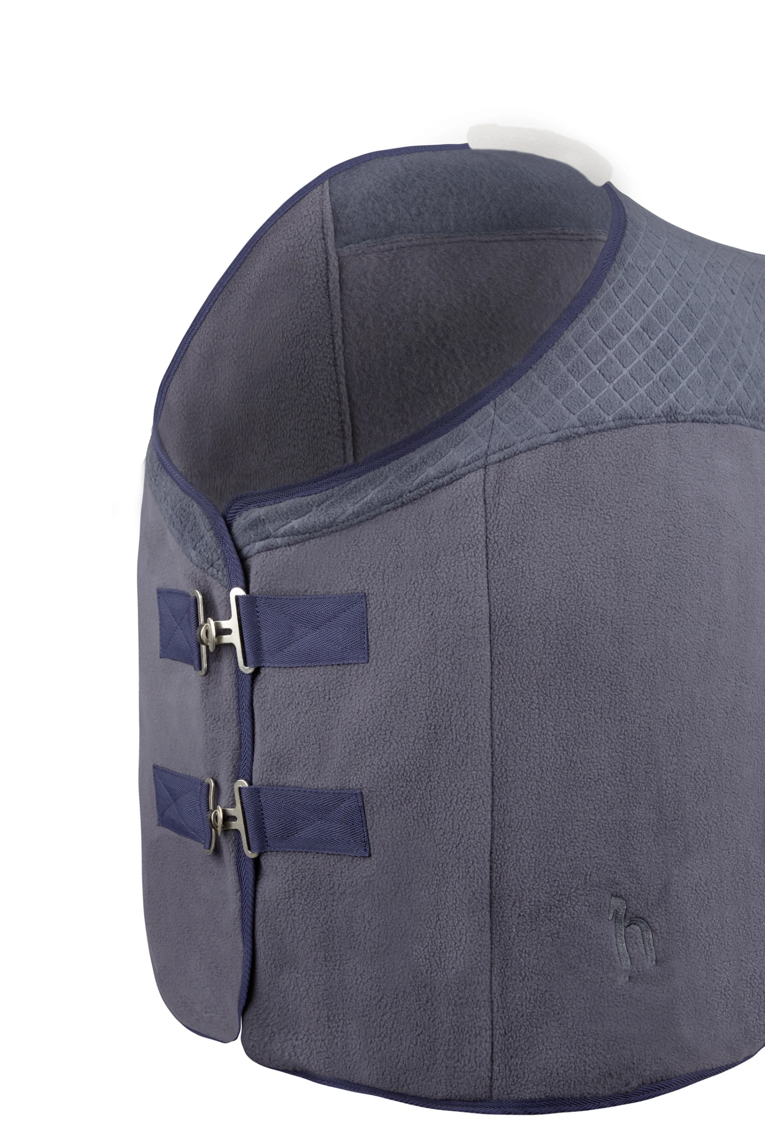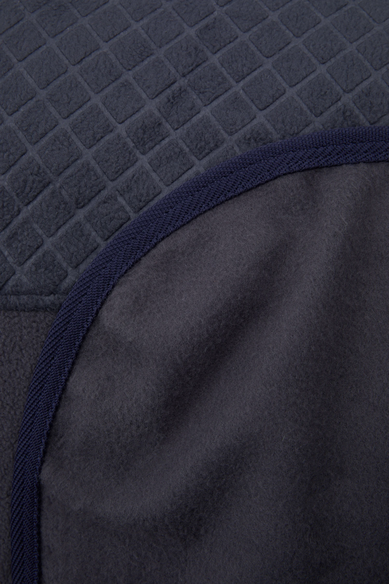 Unsere Horze Victoria Decke bringt einen Hauch von Luxus in dein Sattelzeug. Sie besteht aus superweichem Fleecestoff mit kuscheligem Kunstfell am Widerrist. Zwei Schnallen an der Vorderseite halten die Decke an Ort und Stelle, während die Kreuzgurte und die Schweifkordel dafür sorgen, dass sie nicht verrutscht. Silberne Satinbeschläge vervollständigen den eleganten Look.