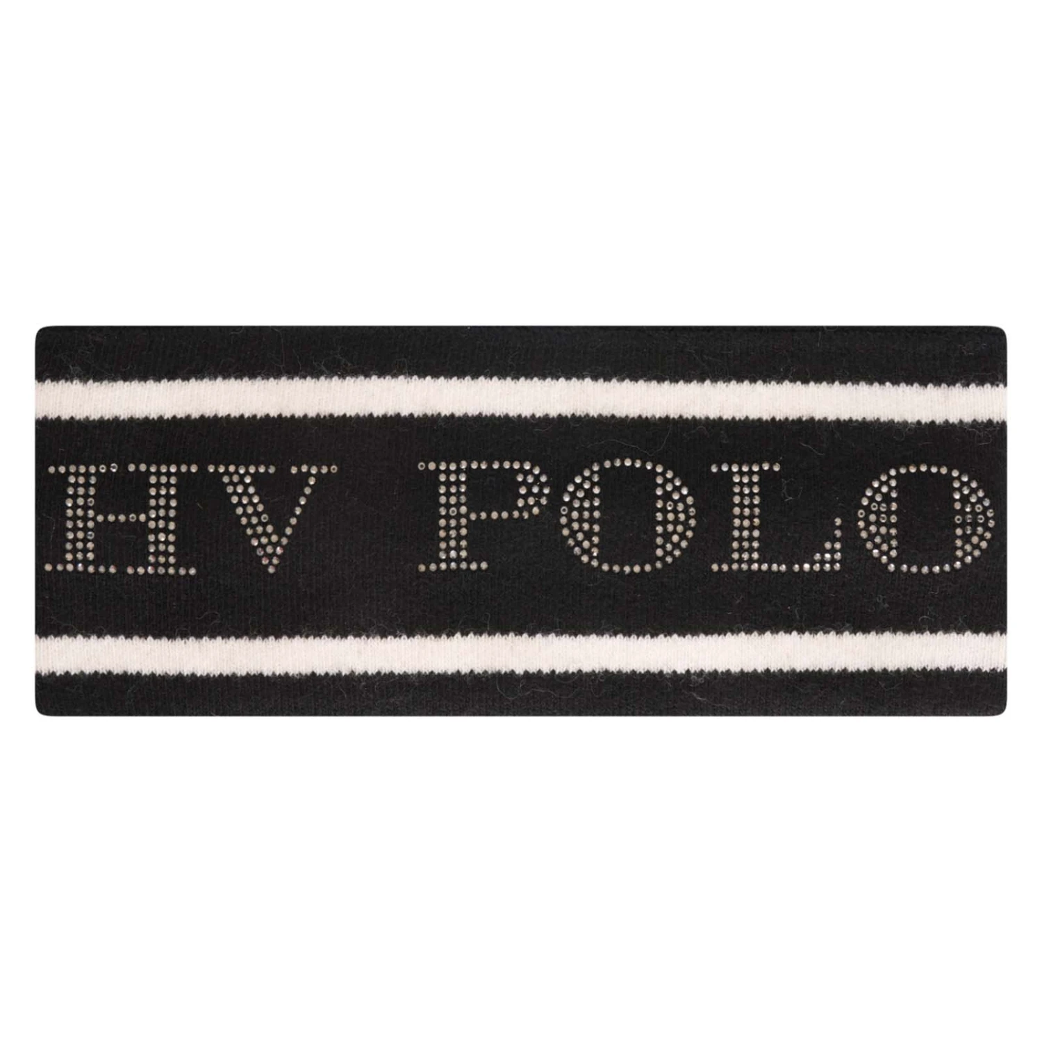 Gestricktes Stirnband mit Streifen und Strasssteinen.