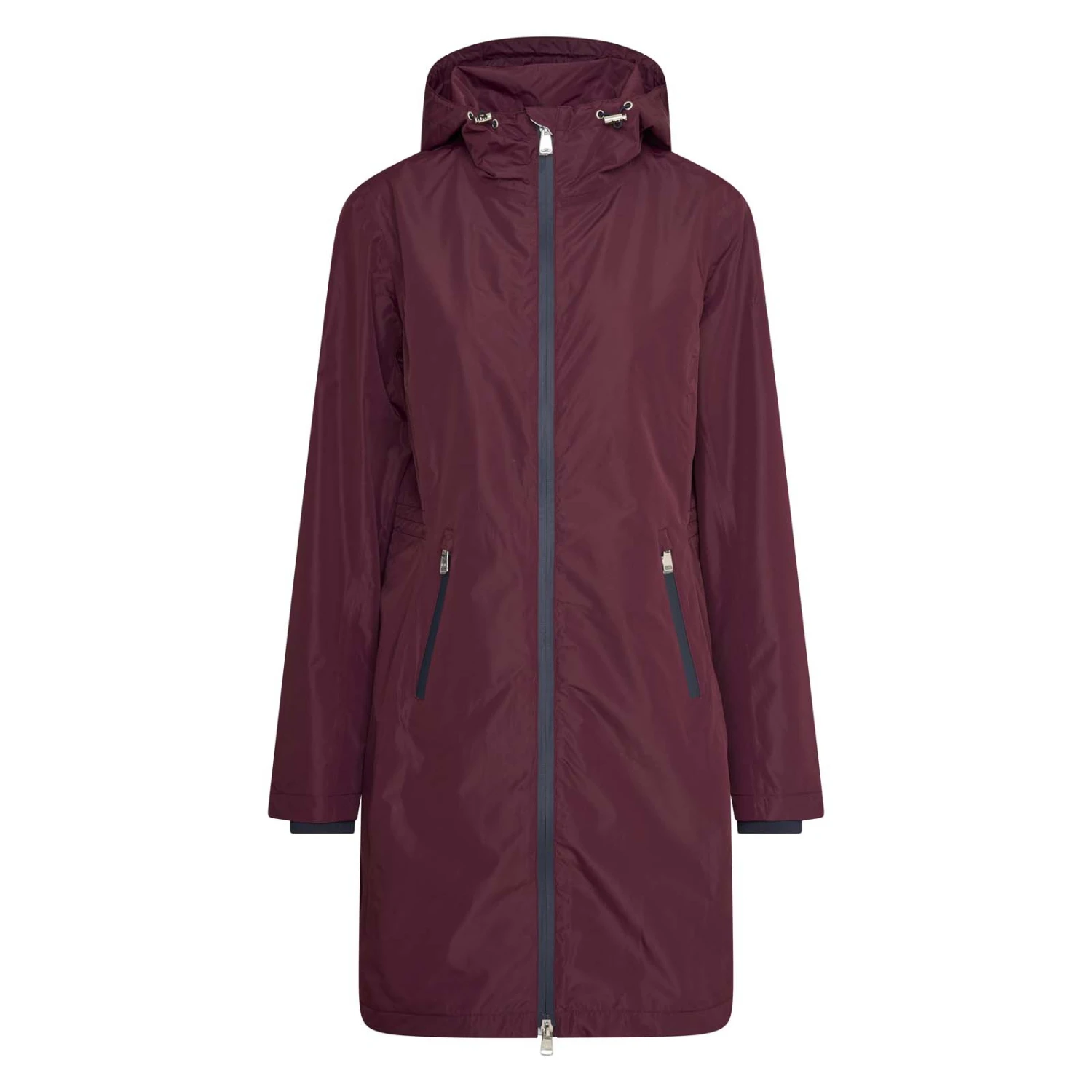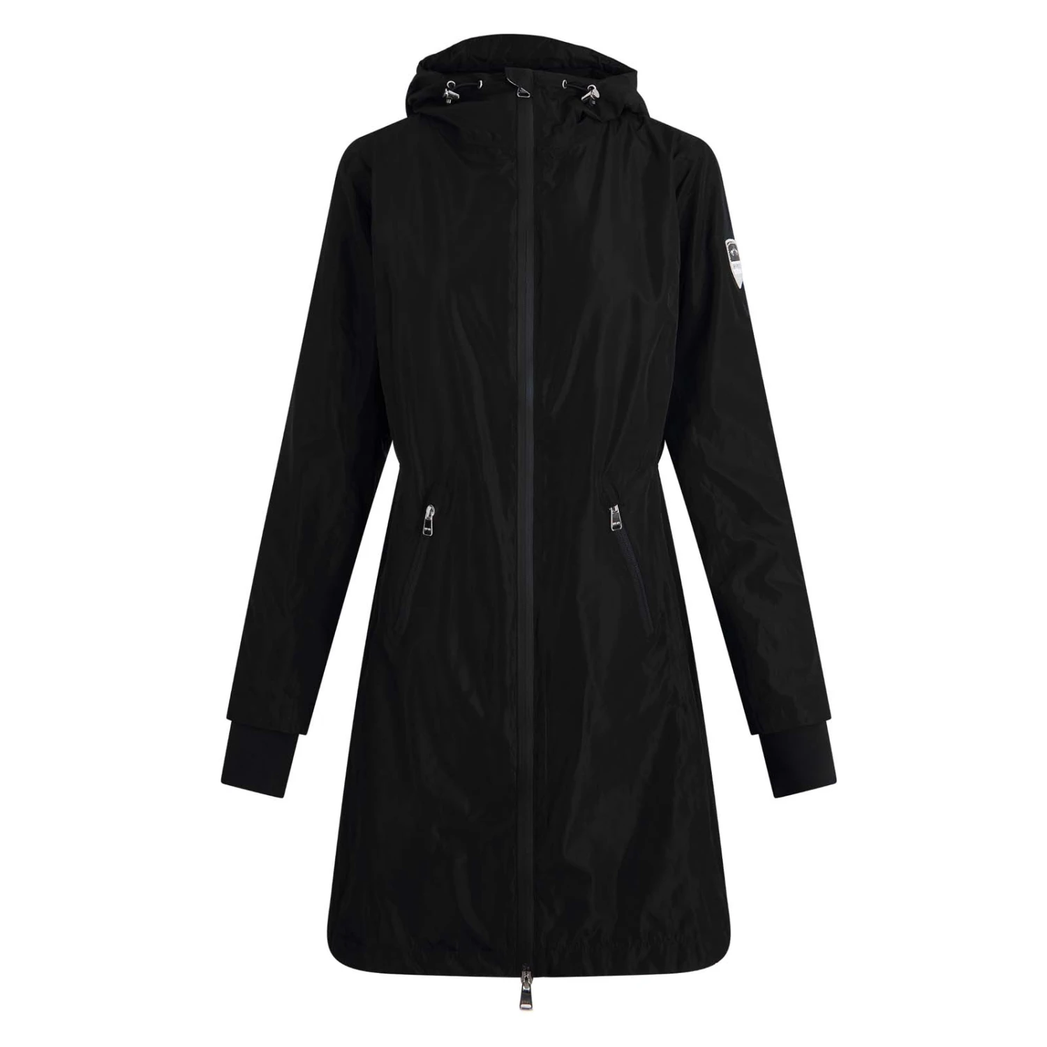 Funktioneller Parka aus ultraweichem, mattem Stoff mit verschweißten Nähten und Kapuze. Die Kapuze ist mit einem Kordelzug mit Stoppern verstellbar und kann auf der Rückseite der Jacke befestigt werden. Der 2-Wege-Reißverschluss hat einen Windfang und einen Kinnschutz. Die gerippten Bündchen an der Unterseite der Ärmel liegen gut an und halten den kalten Wind ab. Die praktischen Rückenschlitze können mit glänzenden Druckknöpfen verschlossen werden. Die schrägen Seitentaschen an der Vorderseite schließen mit einem wasserdichten Reißverschluss. Der Parka ist in der Taille verstellbar und mit einem Logo-Patch mit Strasssteinen am Ärmel versehen. Hergestellt aus wasserdichtem und atmungsaktivem Material. So bist du perfekt vor Regen geschützt.