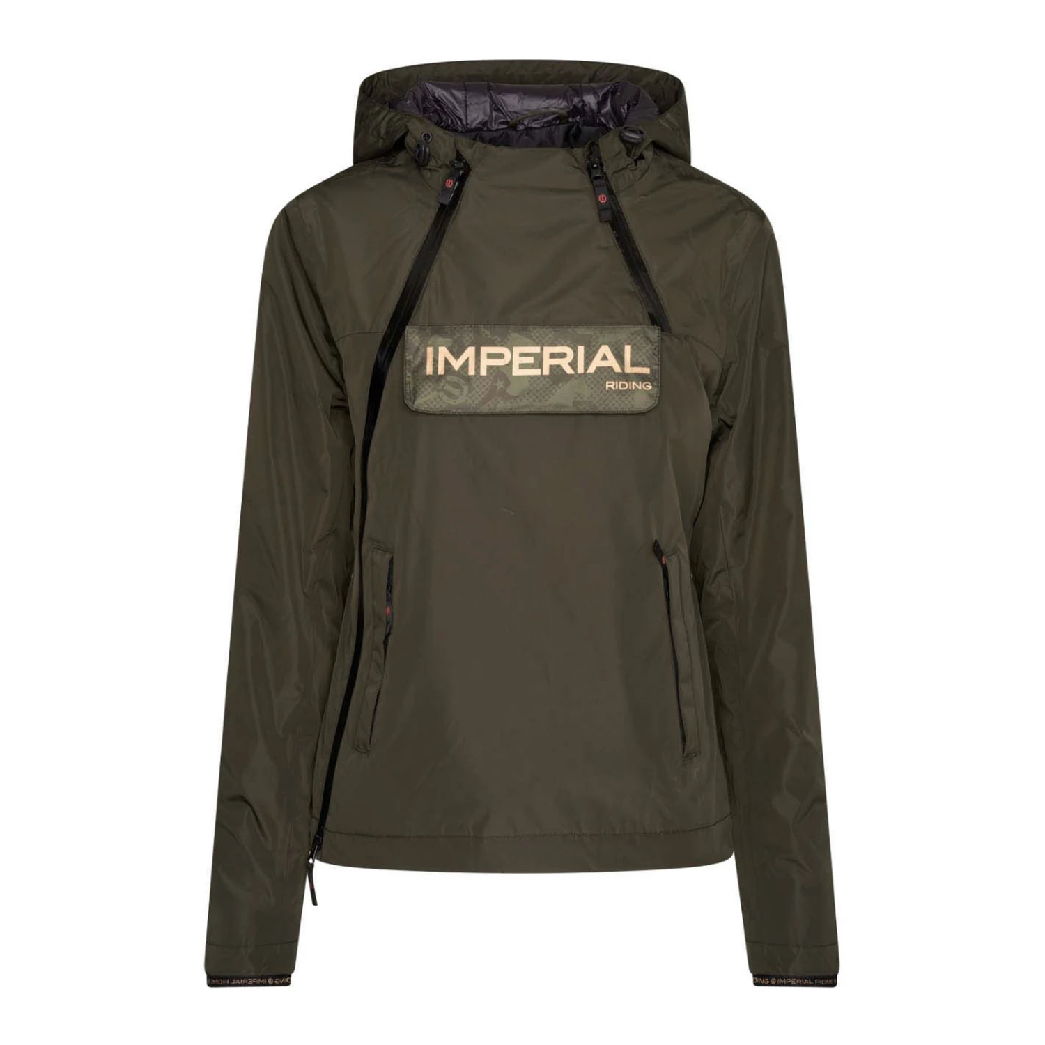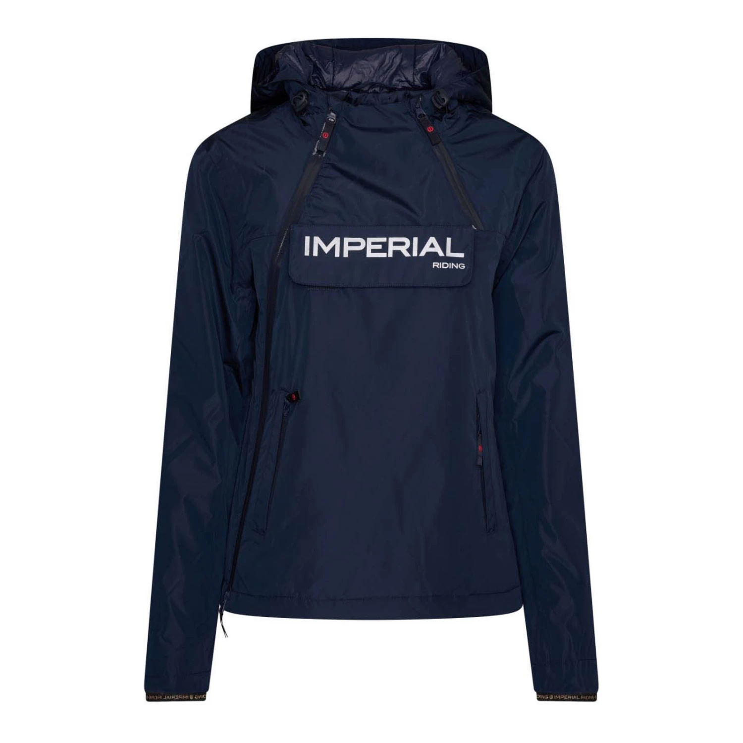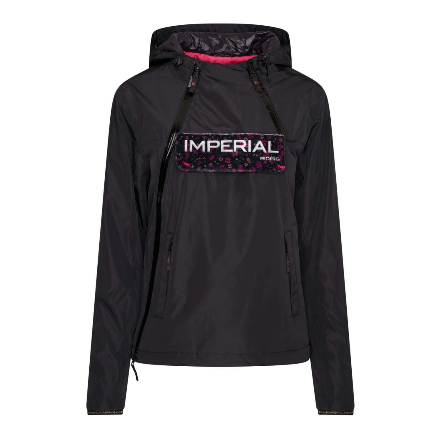 Funktionale Anorak-Jacke mit Kapuze. Mit 2 Reißverschlüssen an der Vorderseite, um das An- und Ausziehen der Jacke beim Reiten zu erleichtern. Super schick! Abnehmbare individuelle Taschenklappe mit Imperial Riding-Markenverzierung und Kollektionssignatur!