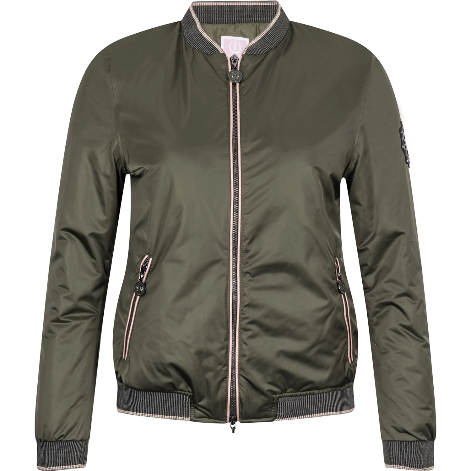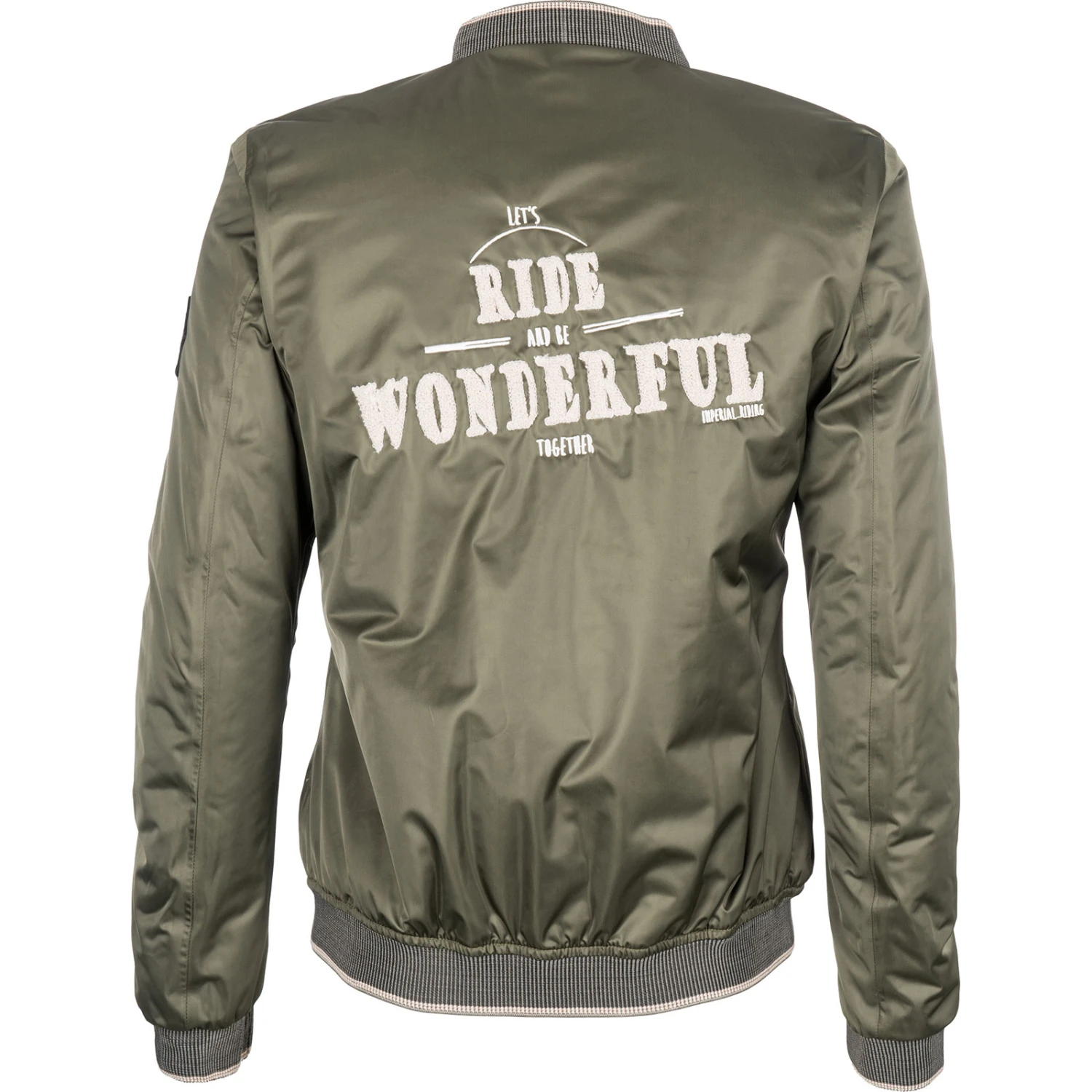 Diese wunderbare Bomberjacke von Imperial Riding hat ein unglaublich schönes Frotteedesign auf der Rückseite, Taschen mit Reißverschlüssen und Glitzerakzente. Außerdem ist die Jacke wasserdicht, atmungsaktiv und die Nähte sind versiegelt.