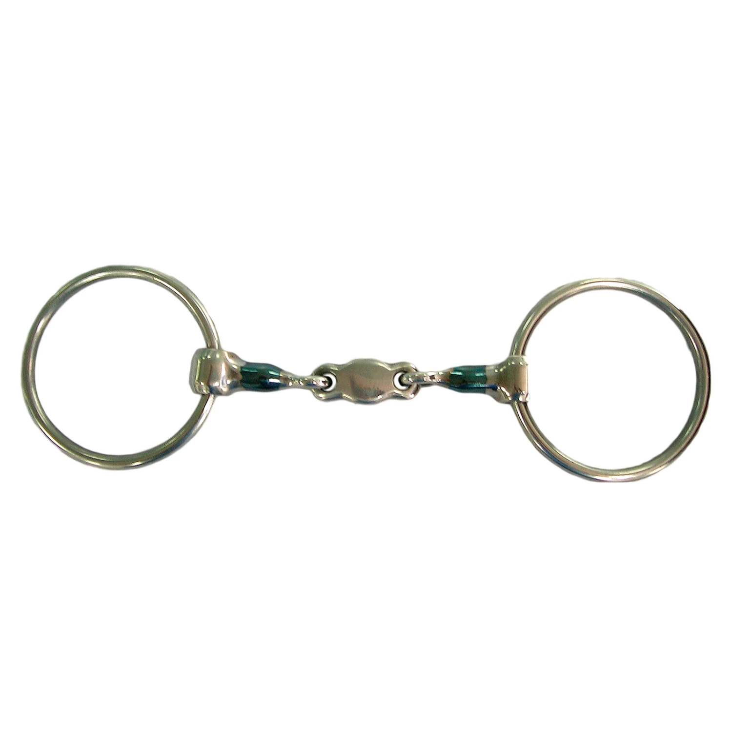 Komfortables, doppelt-gebrochenes Gebiss aus Edelstahl und blauem Sweet Iron, mit mondförmigem Mittelteil