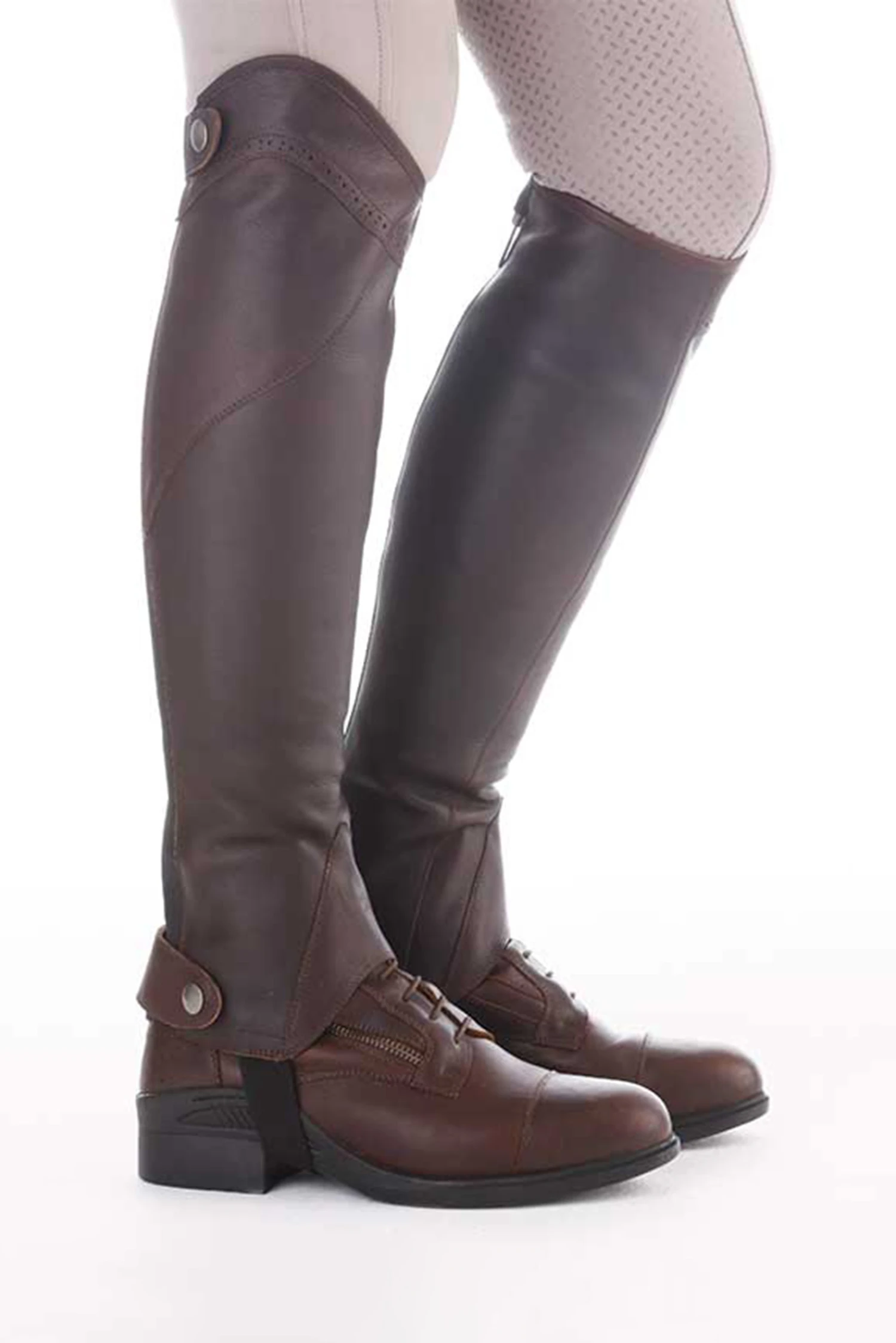 Klassisch geschnittener Chap aus robustem hochwertigen geölten Leder, für eine individuelle Optik und Langlebigkeit. Sehr Pflegeleicht. Gibt besonders guten Grip am Sattel. Mit Reissverschluss von unten nach oben und Elast.