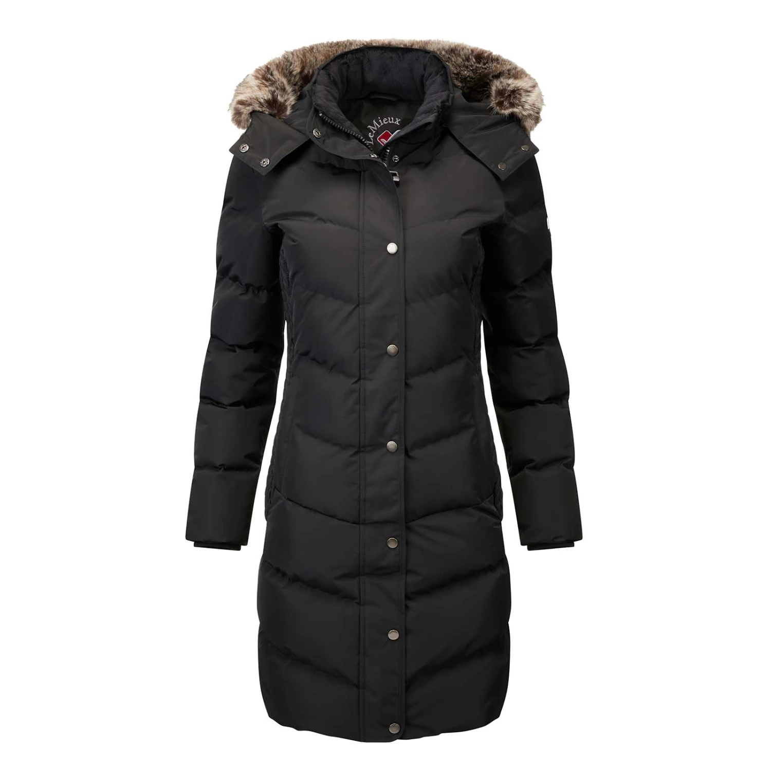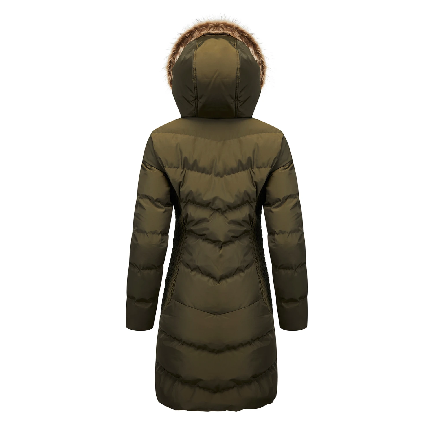 - Stilvoller Dreiviertelmantel mit luxuriöser Kapuze aus Kunstfell
