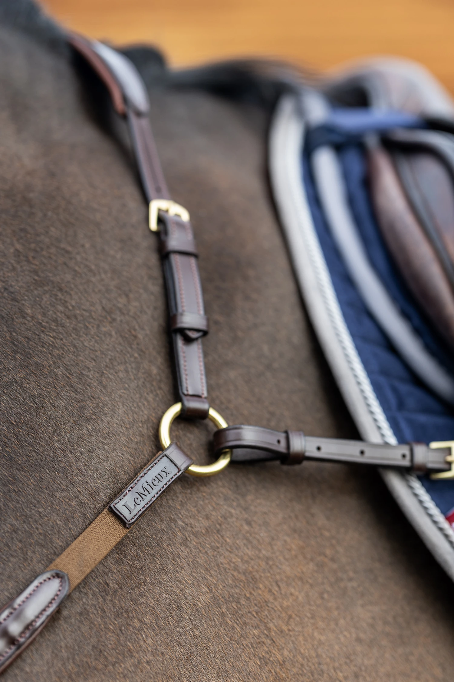 Das LeMieux Vorderzeug mit Martingalbefestigung ist die ideale Lösung für deine Sattelkammer mit einem schicken Aussehen und praktischer Funktionalität. Ein verstellbares Element sitzt mit einem weichen Lederpolster am Widerrist und wird an den elastischen Halsschlaufen befestigt.