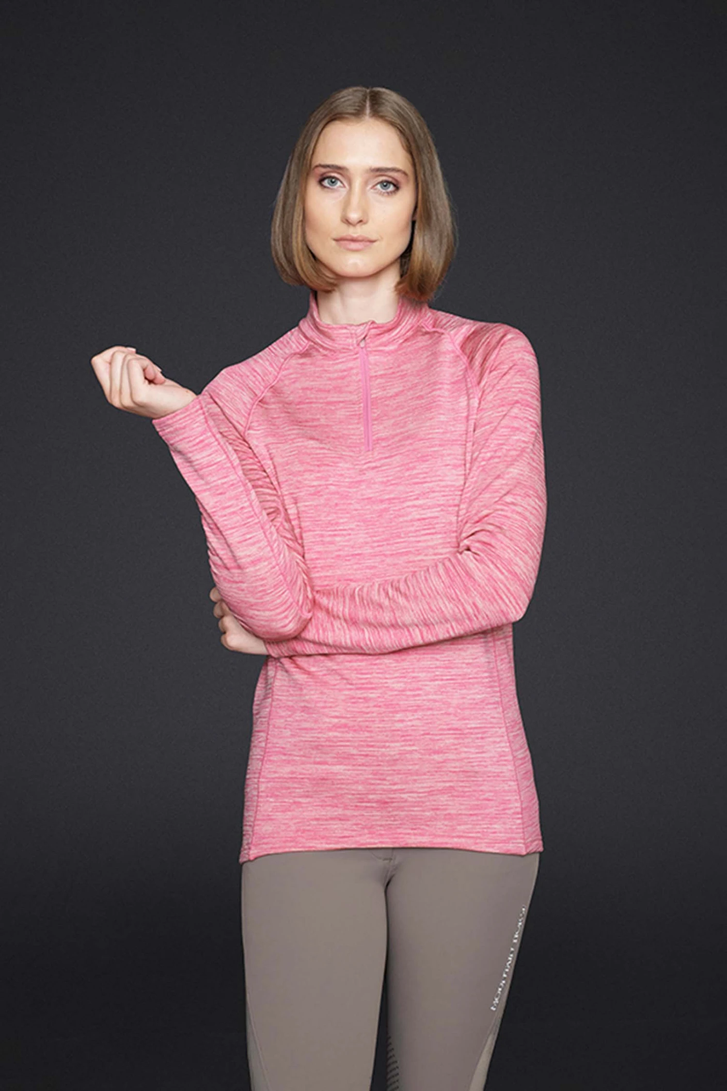 Funktionelles Tech-Fleece aus meliertem, schnell trocknendem High/Low-Stretch-Material.