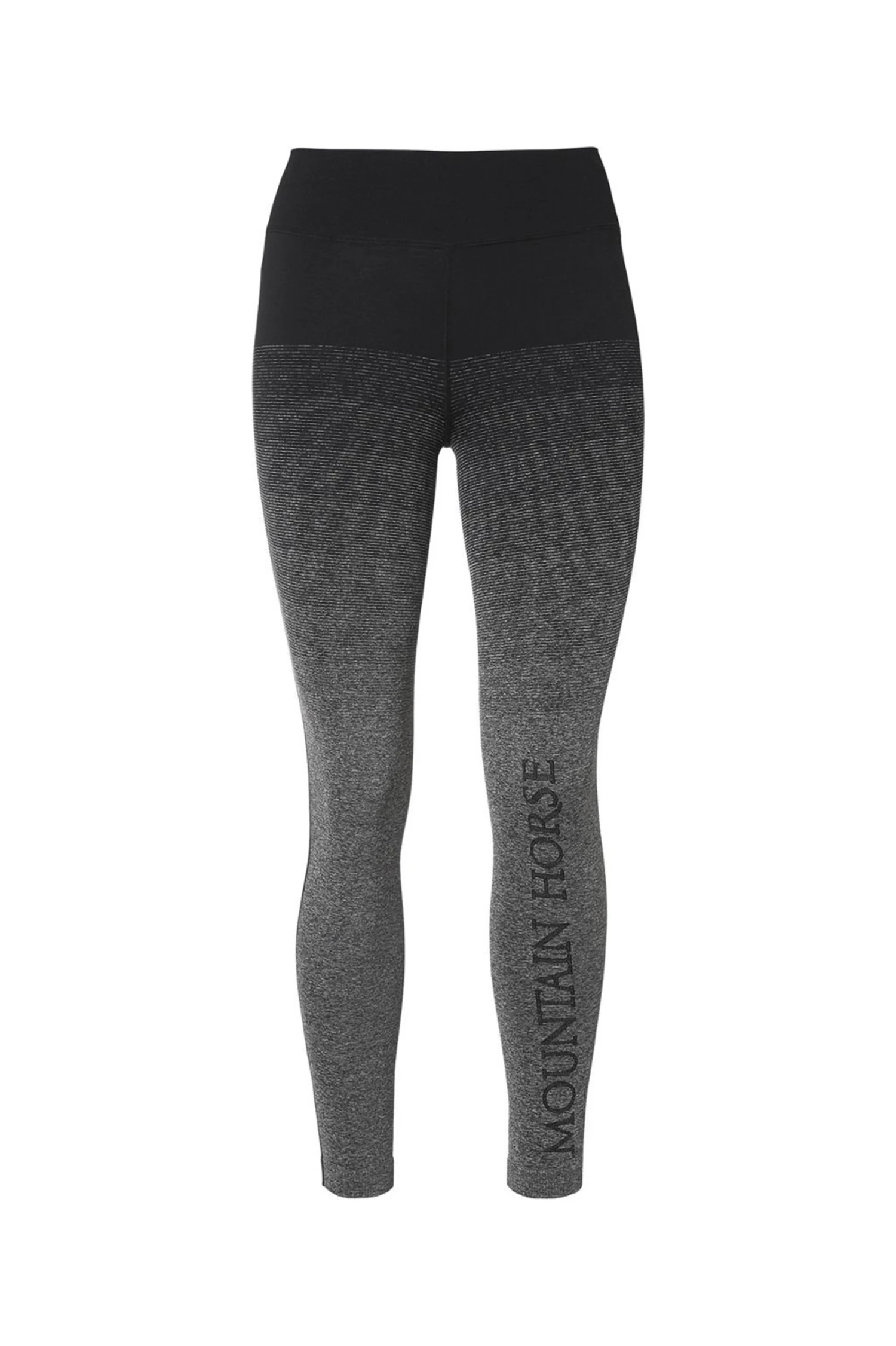 Nahtlose Leggings aus feuchtigkeitsableitendem und schnelltrocknendem Material. Logomuster entlang des linken Beins.