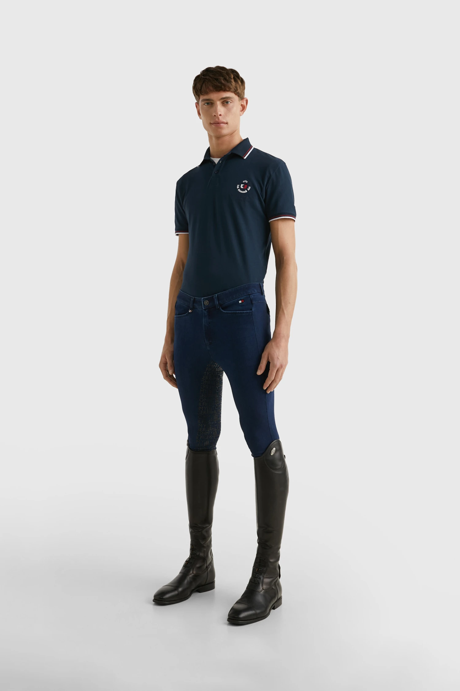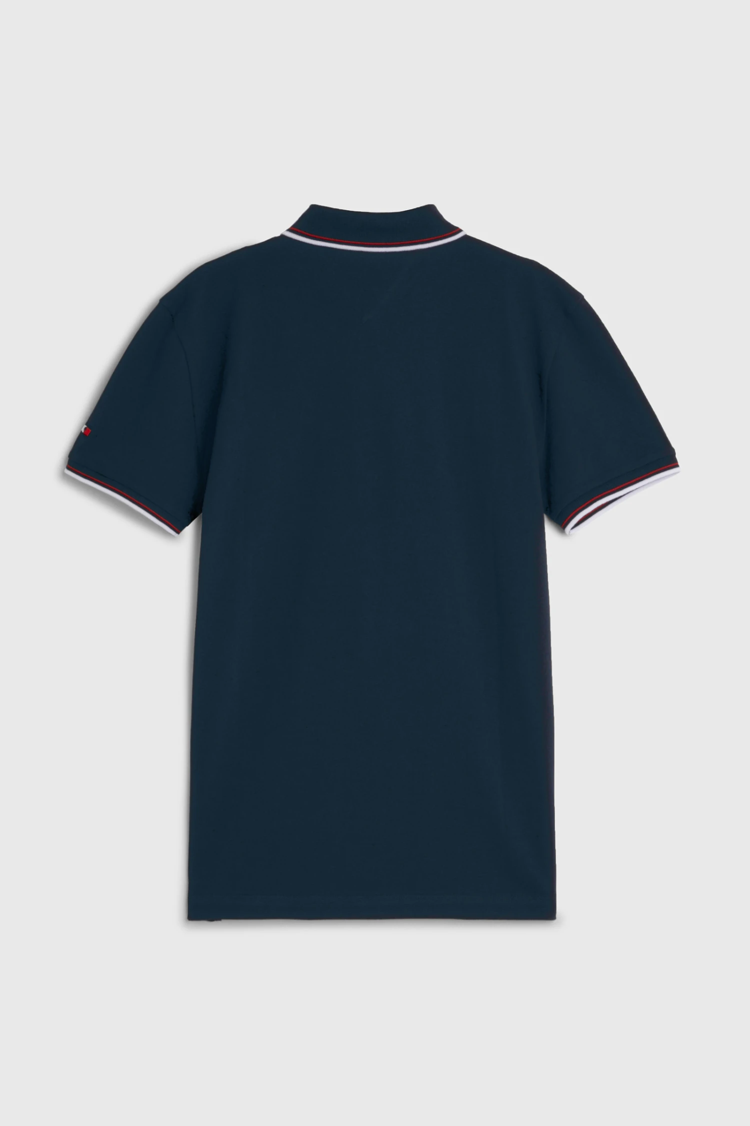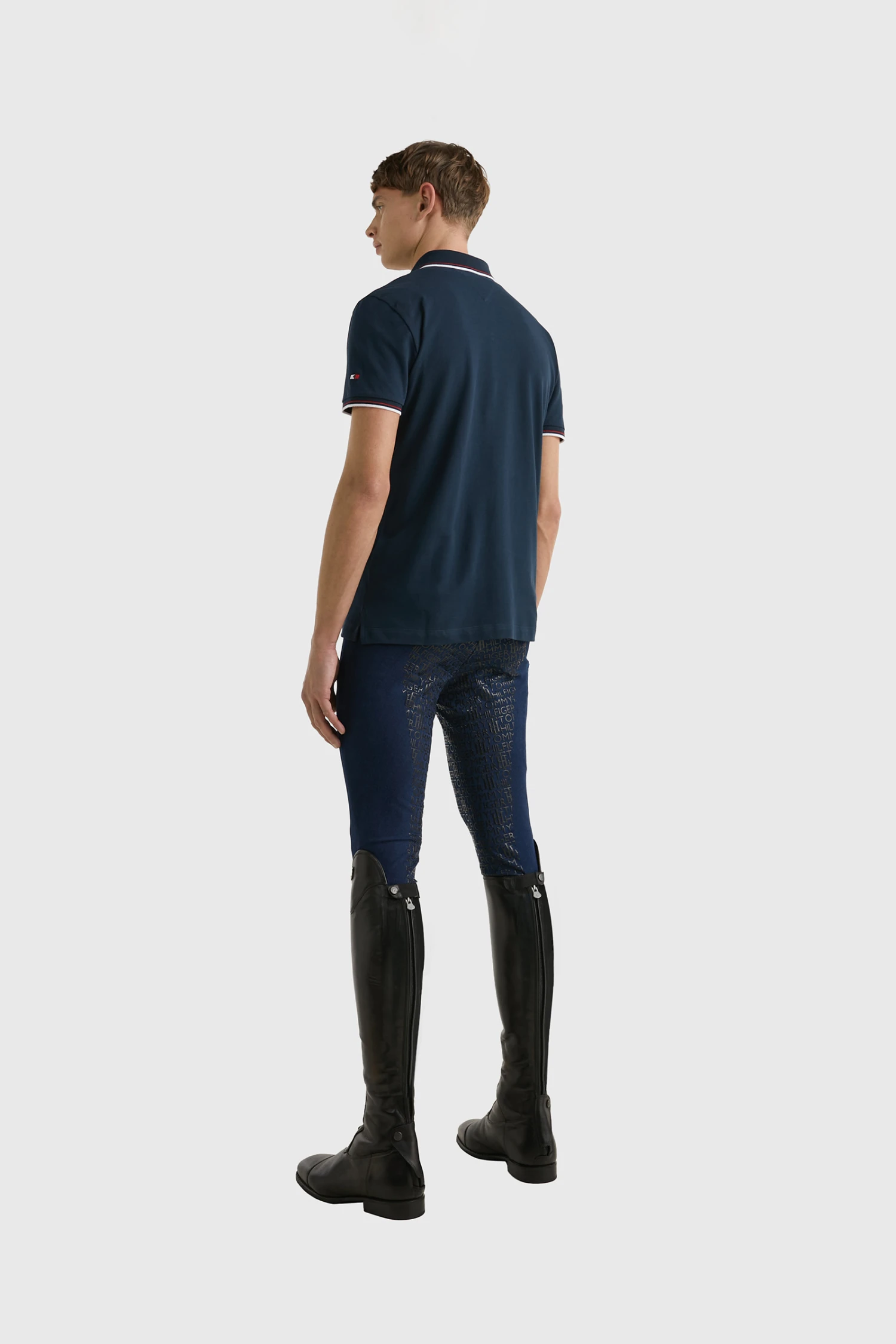College Stil kurzarm Polo Shirt mit kurzer Knopfleiste vorne, Rippstick-Bündchen und -Saum, aufgesticktes Logo auf der linken Brust und am linken Ärmel