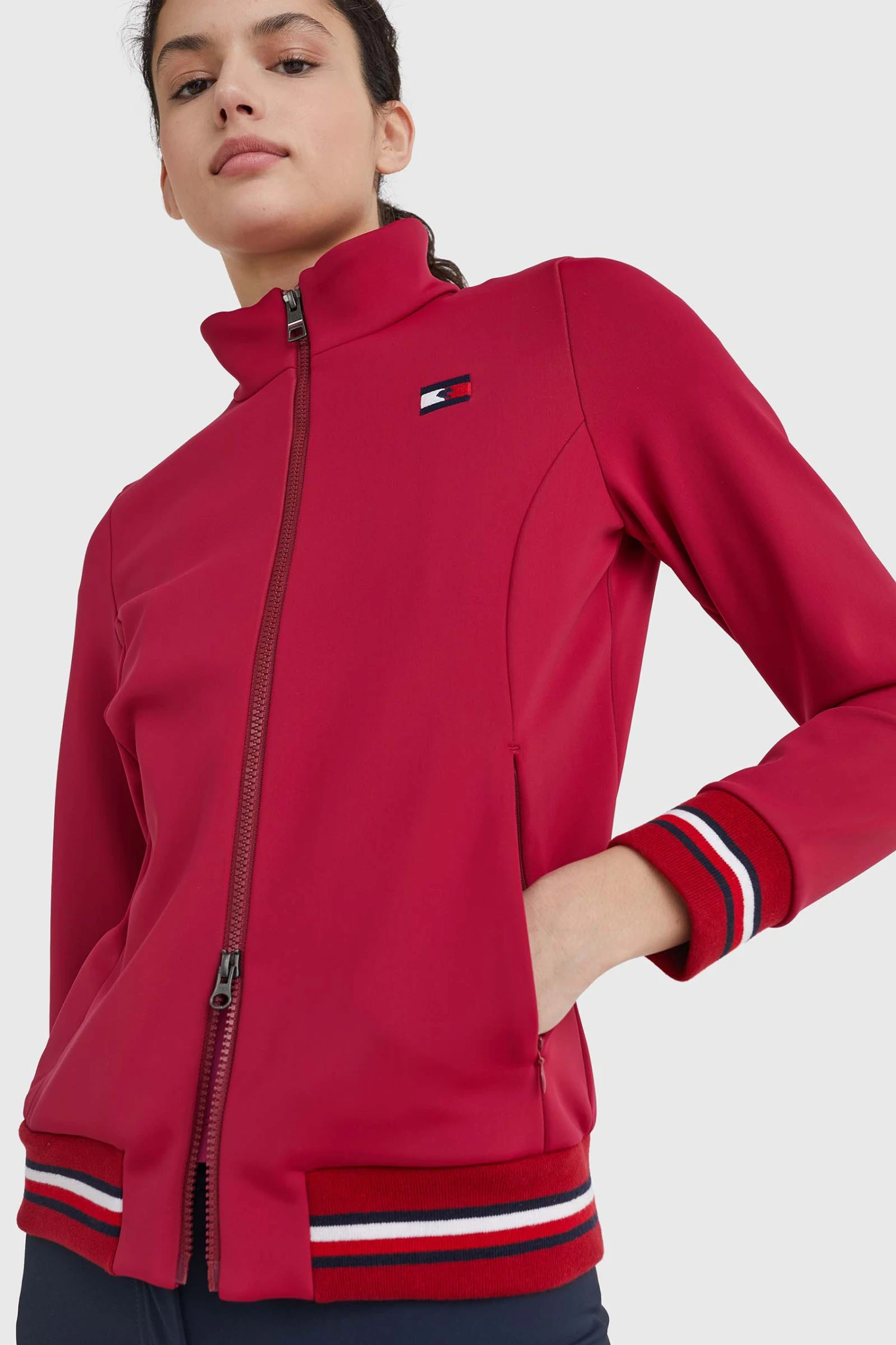 Softshelljacke von Tommy Hilfiger mit 2 Reißverschluss-Seitentaschen, elastisch anliegenden Ribbündchen mit dezentem Tommy Hilfiger Stripe am Saum und am Ärmelabschluss. Die Jacke besitzt eine Logo Stickerei auf der linken Brust und TH Global Streifenband Applikation hinten über dem Kragen.