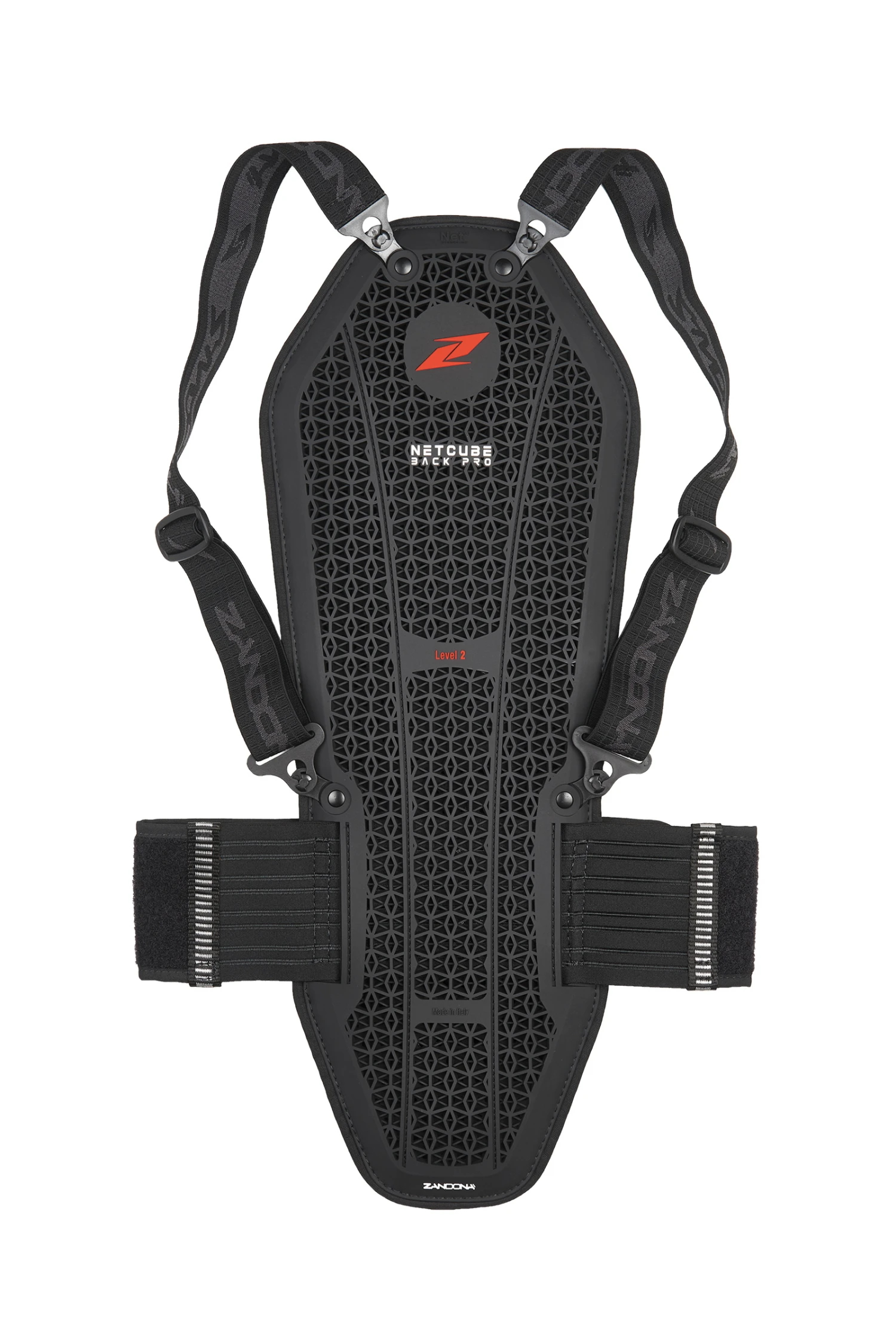 NetCube Back Pro ist ein Niveau 2 (EN 1621-2) zertifizierter Rückenprotektor, der mit der exklusiven Net3-Technologie ausgestattet ist, eine innovative Struktur aus Nitril Anti-Schock-Gummi, mit patentierter 3D-Netztechnologie, das Ergebnis sorgfältiger Studien, die es Zandona ermöglicht hat, eine erfolgreiche Kombination aus Form+ Zusammensetzung, die sehr gute Leistungen erbringt und eine hohe Absorptions- und Verteilungsleistung der Aufprallenergie garantiert wodurch ein maximaler Schutz gewährleistet wird.